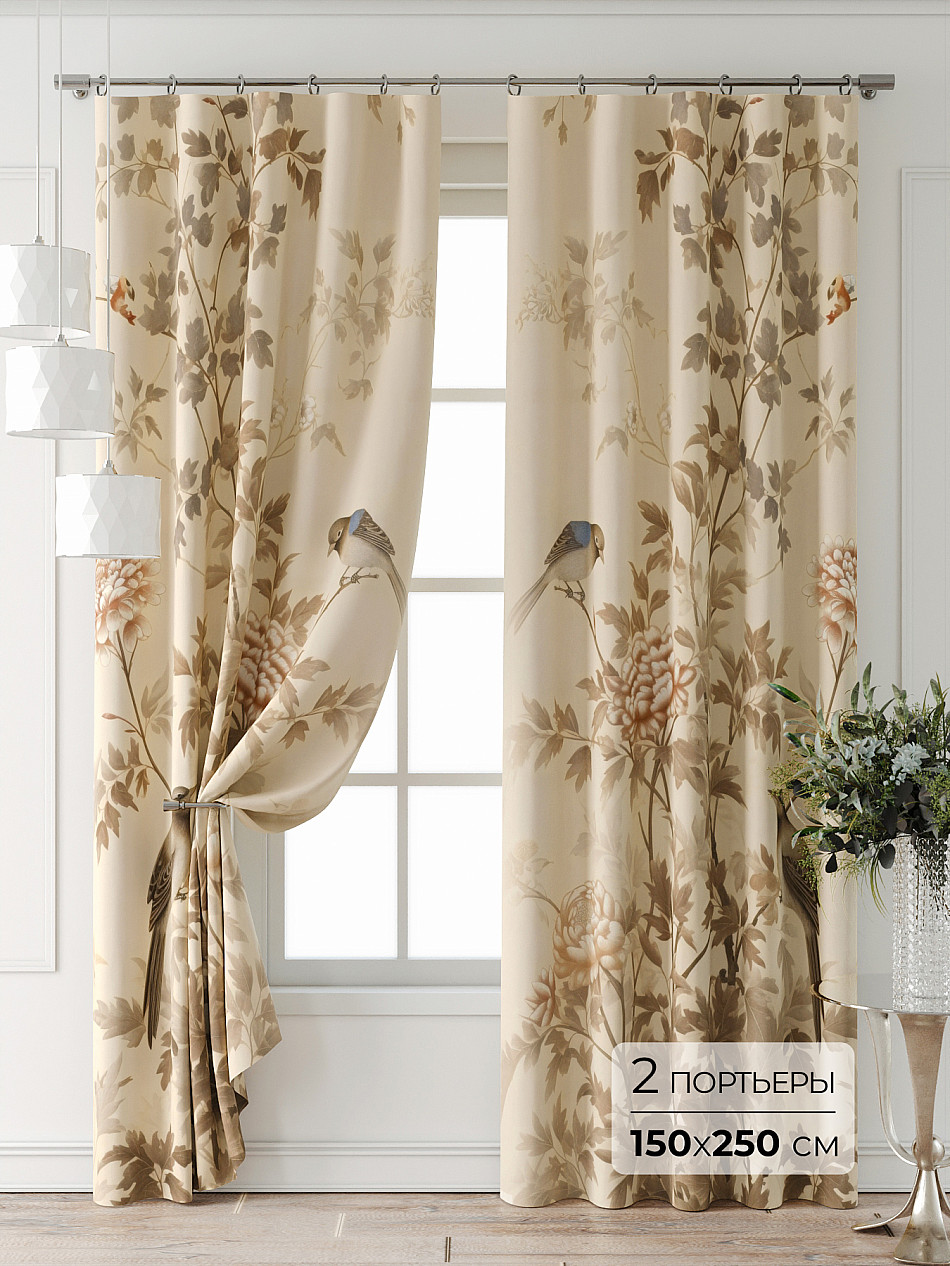 Портьера 2 шт. — 150х250 см. ( Изменить высоту) Крепление: шторная лента (крючки), кулиска Подробнее