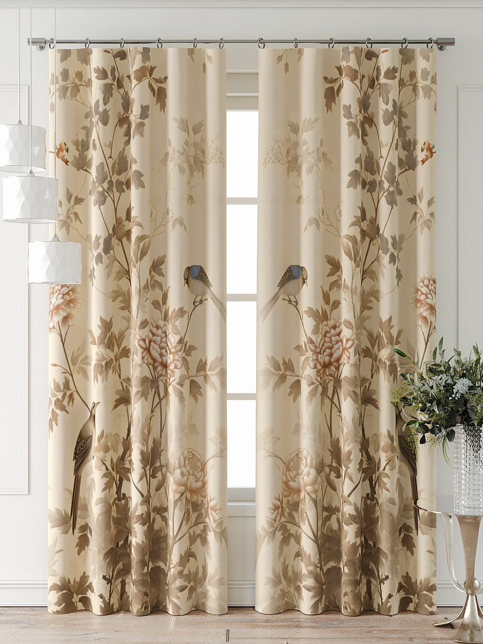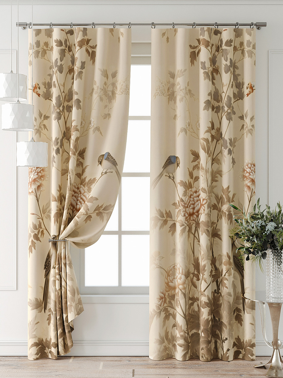 Дерево Натуральные цвета Птицы Растения Фото принтАксессуары для оформления штор: