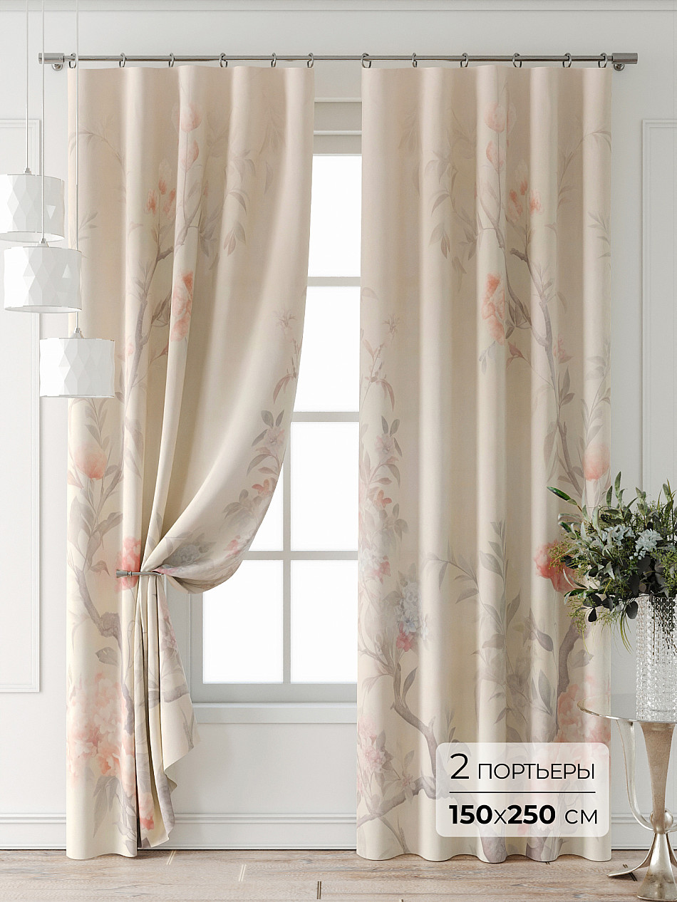 Портьера 2 шт. — 150х250 см. ( Изменить высоту) Крепление: шторная лента (крючки), кулиска Подробнее