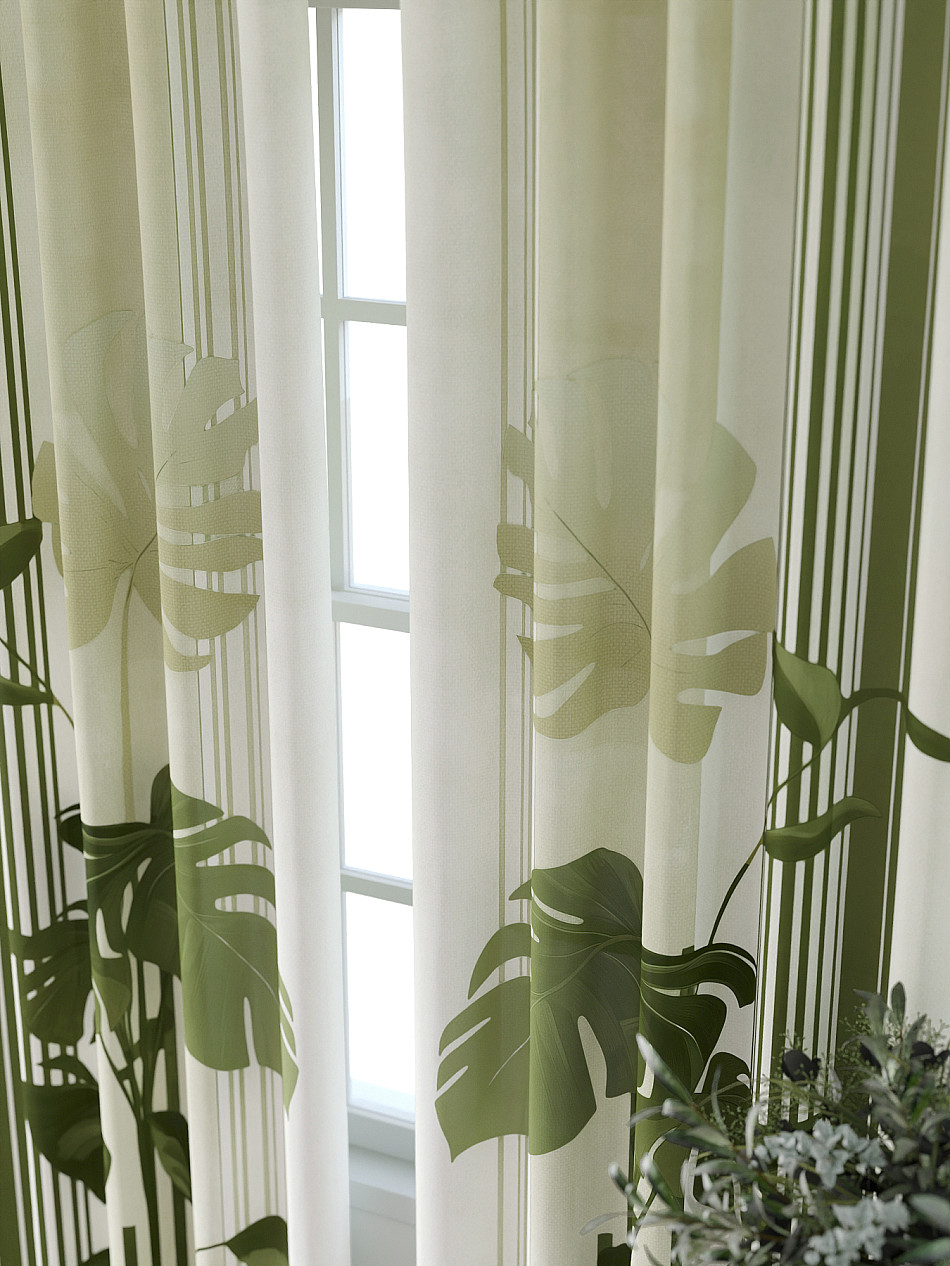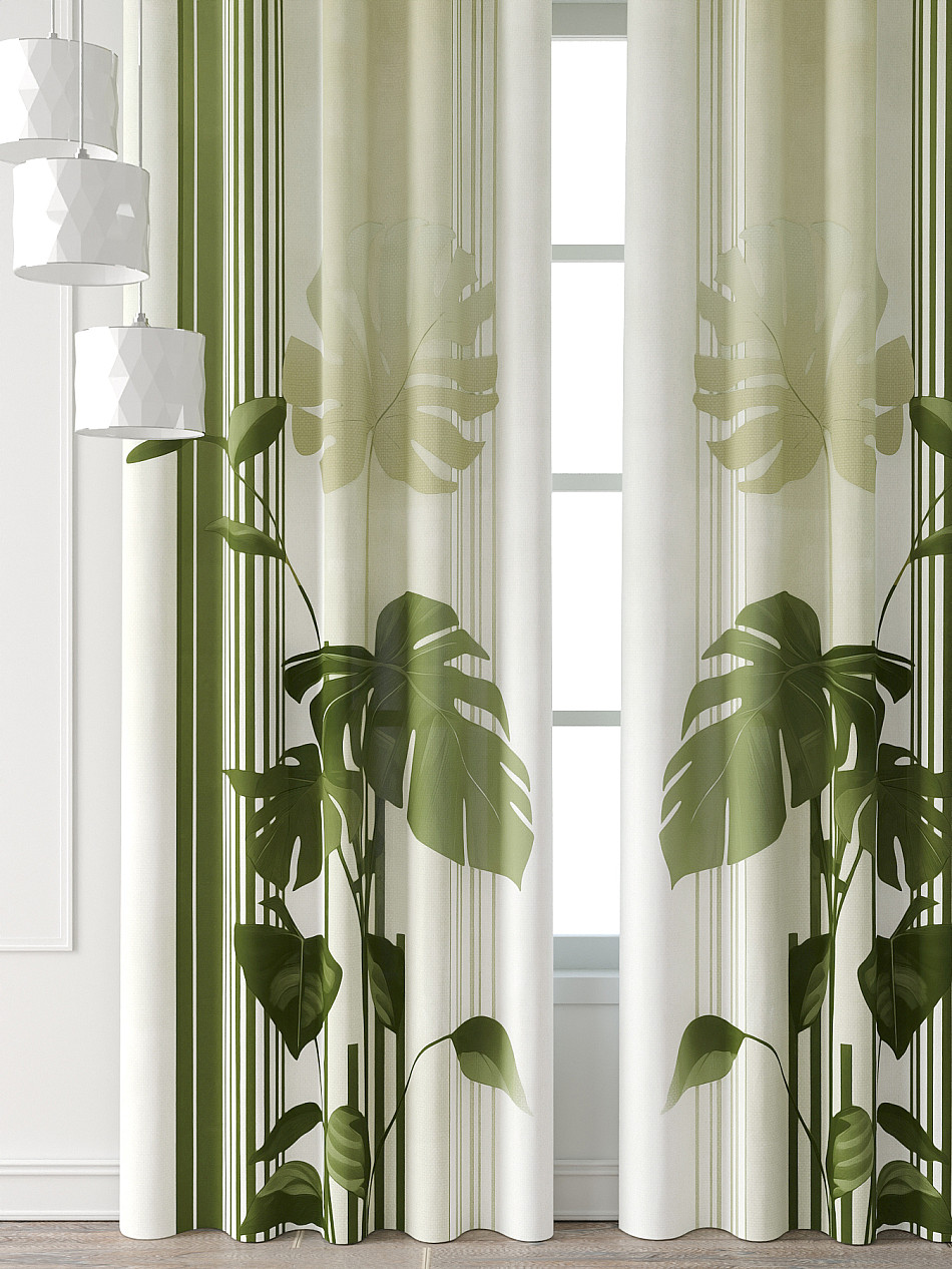 Комбинированные Полоска Растения Современный Фото принтАксессуары для оформления штор: