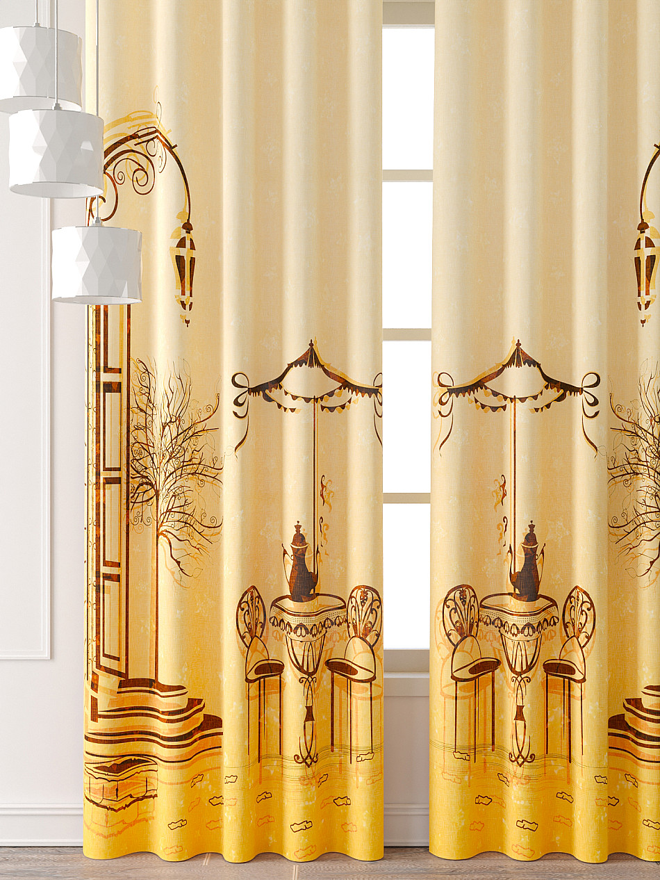Портьера 2 шт. Подхват - доп.услуга. Комплект штор из легкой портьерной ткани (габардин) оформлен печатным рисунком. Печатный рисунок дает широкие возможности обновить интерьер фактически нет требуя ремонта за счет огромного выбора. Ткани с печатным рисунком безопасны и не содержат токсичных веществ. Не смотря на то что, материал легкий, он имеет высокую плотность, мало загрязнятся и не требует особого ухода даже после стирки, что важно для кухонных занавесок. Шторы не выцветают, не растягиваются, превосходно драпируются, образуя струящиеся складки. Прекрасное решение для создания красоты и уюта с помощью уникальных дизайнов.
