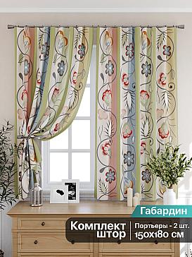 Портьеры 2 шт: Комплект штор из легкой портьерной ткани (габардин) оформлен печатным рисунком. Печатный рисунок дает широкие возможности обновить интерьер фактически нет требуя ремонта за счет огромного выбора. Ткани с печатным рисунком безопасны и не содержат токсичных веществ. Не смотря на то что, материал легкий, он имеет высокую плотность, мало загрязнятся и не требует особого ухода даже после стирки, что важно для кухонных занавесок. Шторы не выцветают, не растягиваются, превосходно драпируются, образуя струящиеся складки. Прекрасное решение для создания красоты и уюта с помощью уникальных дизайнов.
