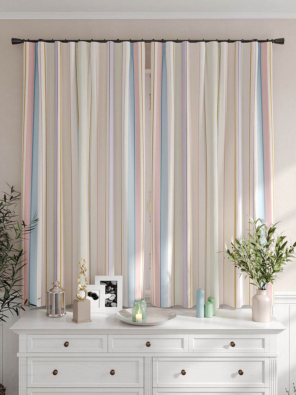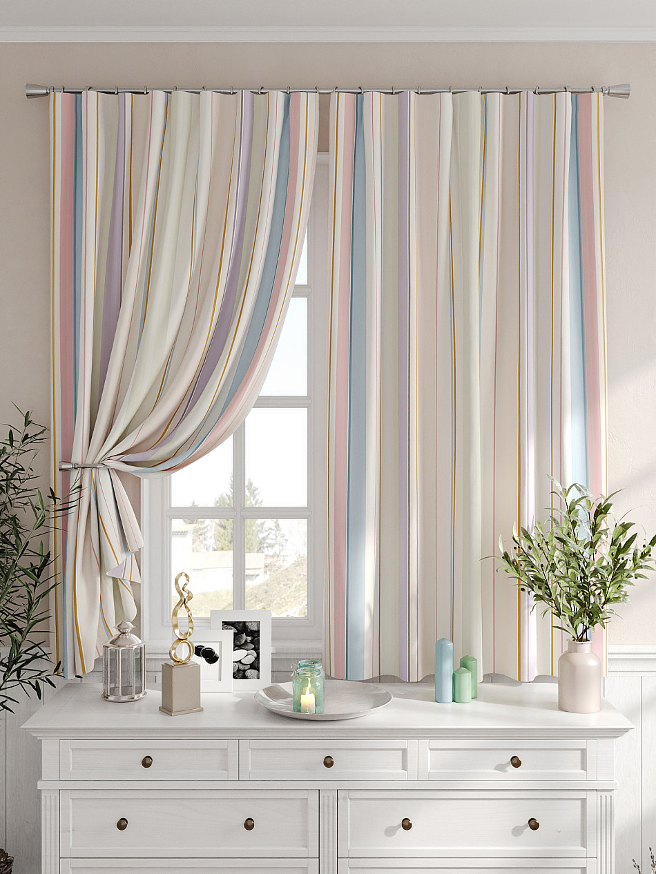 Портьеры 2 шт. Комплект штор из легкой портьерной ткани (габардин) оформлен печатным рисунком. Печатный рисунок дает широкие возможности обновить интерьер фактически не требуя ремонта за счет огромного выбора. Ткани с печатным рисунком безопасны и не содержат токсичных веществ. Не смотря на то, что материал легкий, он имеет высокую плотность, мало загрязнятся и не требует особого ухода даже после стирки, что важно для кухонных занавесок. Шторы не выцветают, не растягиваются, превосходно драпируются, образуя струящиеся складки. Прекрасное решение для создания красоты и уюта с помощью уникальных дизайнов.
