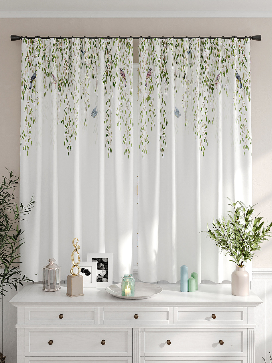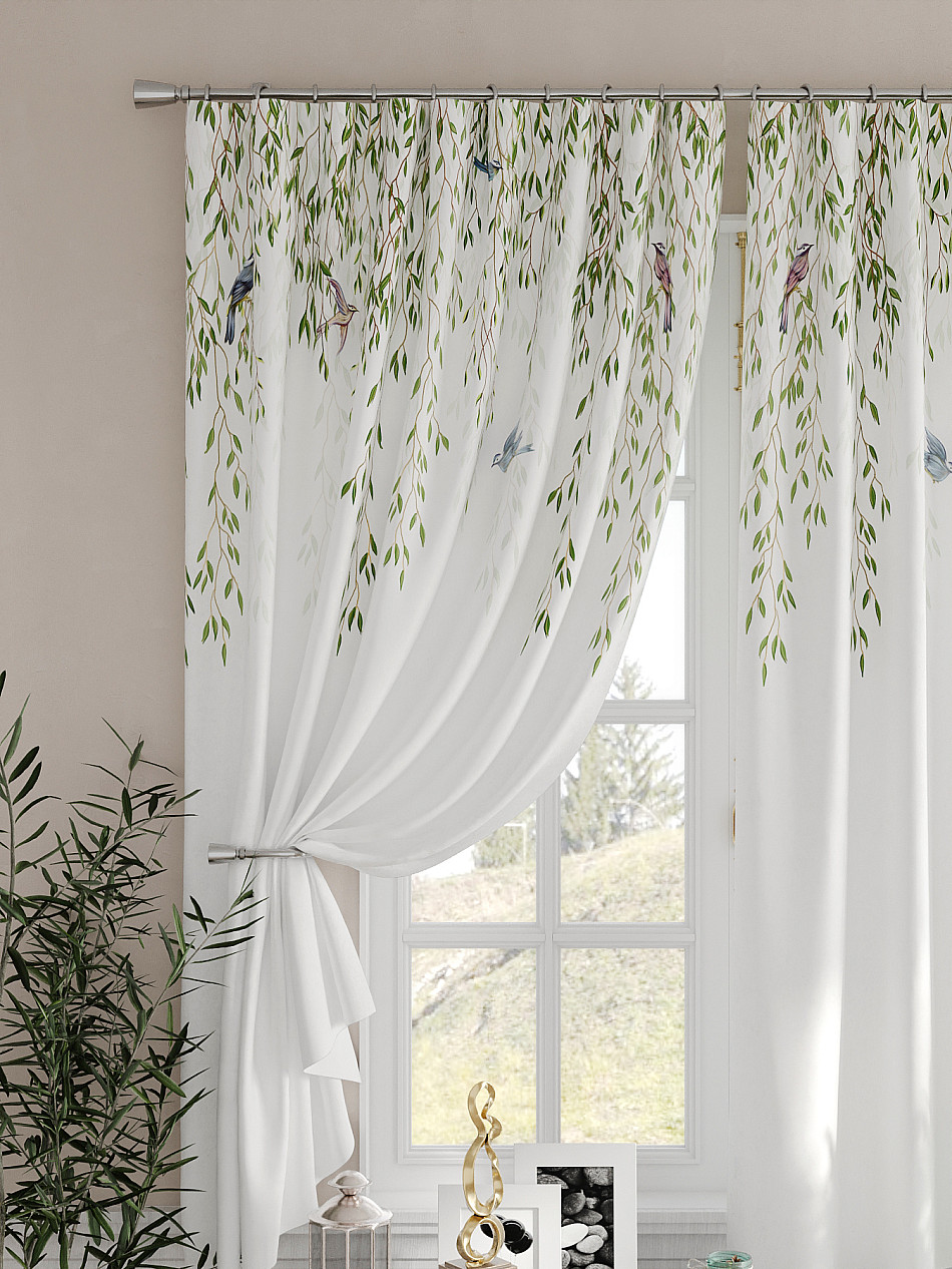 Портьеры 2 шт. Комплект штор из легкой портьерной ткани (габардин) оформлен печатным рисунком. Печатный рисунок дает широкие возможности обновить интерьер фактически не требуя ремонта за счет огромного выбора. Ткани с печатным рисунком безопасны и не содержат токсичных веществ. Не смотря на то, что материал легкий, он имеет высокую плотность, мало загрязнятся и не требует особого ухода даже после стирки, что важно для кухонных занавесок. Шторы не выцветают, не растягиваются, превосходно драпируются, образуя струящиеся складки. Прекрасное решение для создания красоты и уюта с помощью уникальных дизайнов.