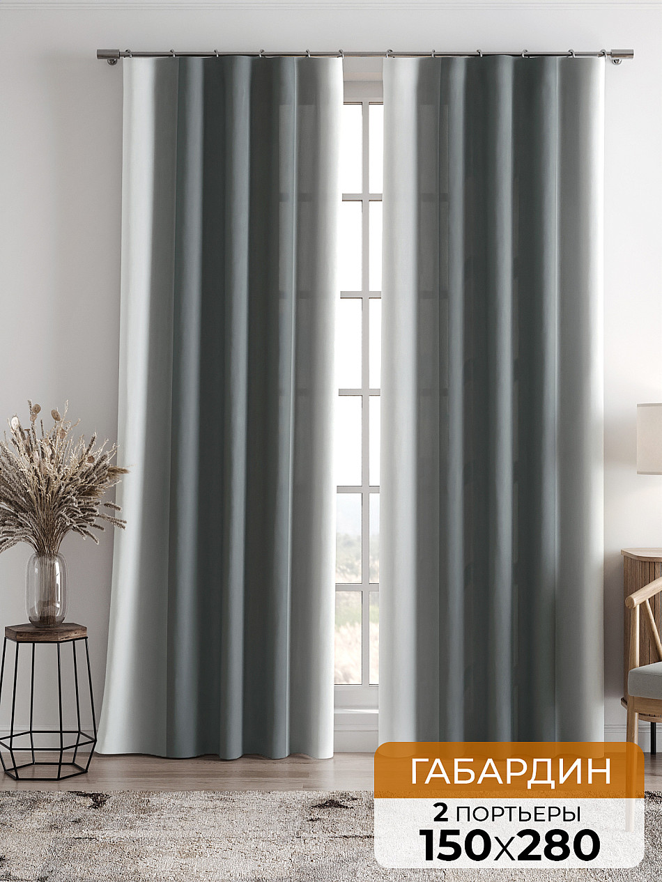 Габардин представляет собой целую группу тканей, которые отличаются содержанием и сочетанием различных волокон – хлопка, шелка, шерсти или синтетики. В зависимости от состава материала, шторы из габардина могут быть разными по плотности и внешнему виду, но всегда отличаются характерным декоративным рубчиком на поверхности. Габардин – идеальная ткань для пошива штор, поскольку она отлично дышит, не мнется, легкая и мягкая на ощупь, но при этом прочная и хорошо защищает от солнечных лучей.