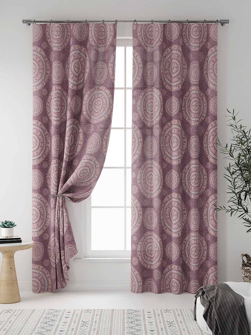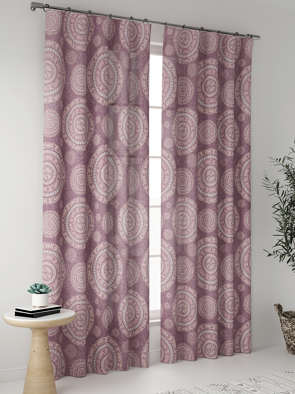 Комплект штор из легкой портьерной ткани (габардин) оформлен печатным рисунком. Печатный рисунок дает широкие возможности обновить интерьер фактически нет требуя ремонта за счет огромного выбора. Ткани с печатным рисунком безопасны и не содержат токсичных веществ. Не смотря на то что, материал легкий, он имеет высокую плотность, мало загрязнятся и не требует особого ухода даже после стирки, что важно для кухонных занавесок. Шторы не выцветают, не растягиваются, превосходно драпируются, образуя струящиеся складки. Прекрасное решение для создания красоты и уюта с помощью уникальных дизайнов.