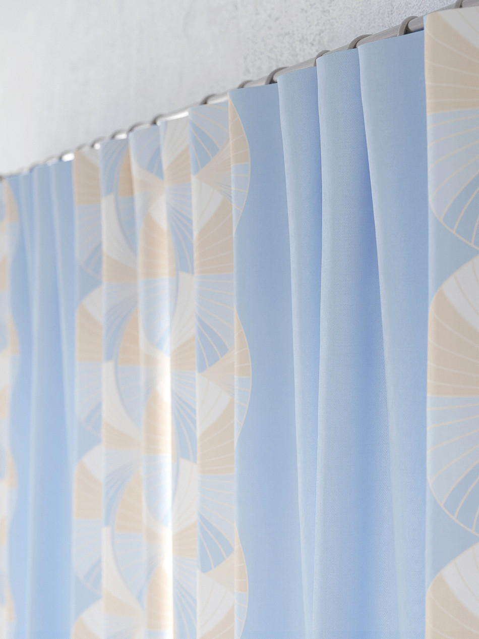 По верхнему краю портьер пришита шторная тесьма 6 см, с ее помощью затянув узелки от кордовых нитей с обеих сторон и стянув их до нужного размера можно сформировать округлые складки, далее вставить крючки в кармашки и повесить на карниз. Обязательно проверьте кордовые нити – они должны быть надежно завязаны, в противном случае во время стягивания они могут вылететь. Шторная тесьма имеет два ряда кармашков, с их помощью можно регулировать не только длину, но и ширину. Такое крепление подходит для всех типов карнизов.