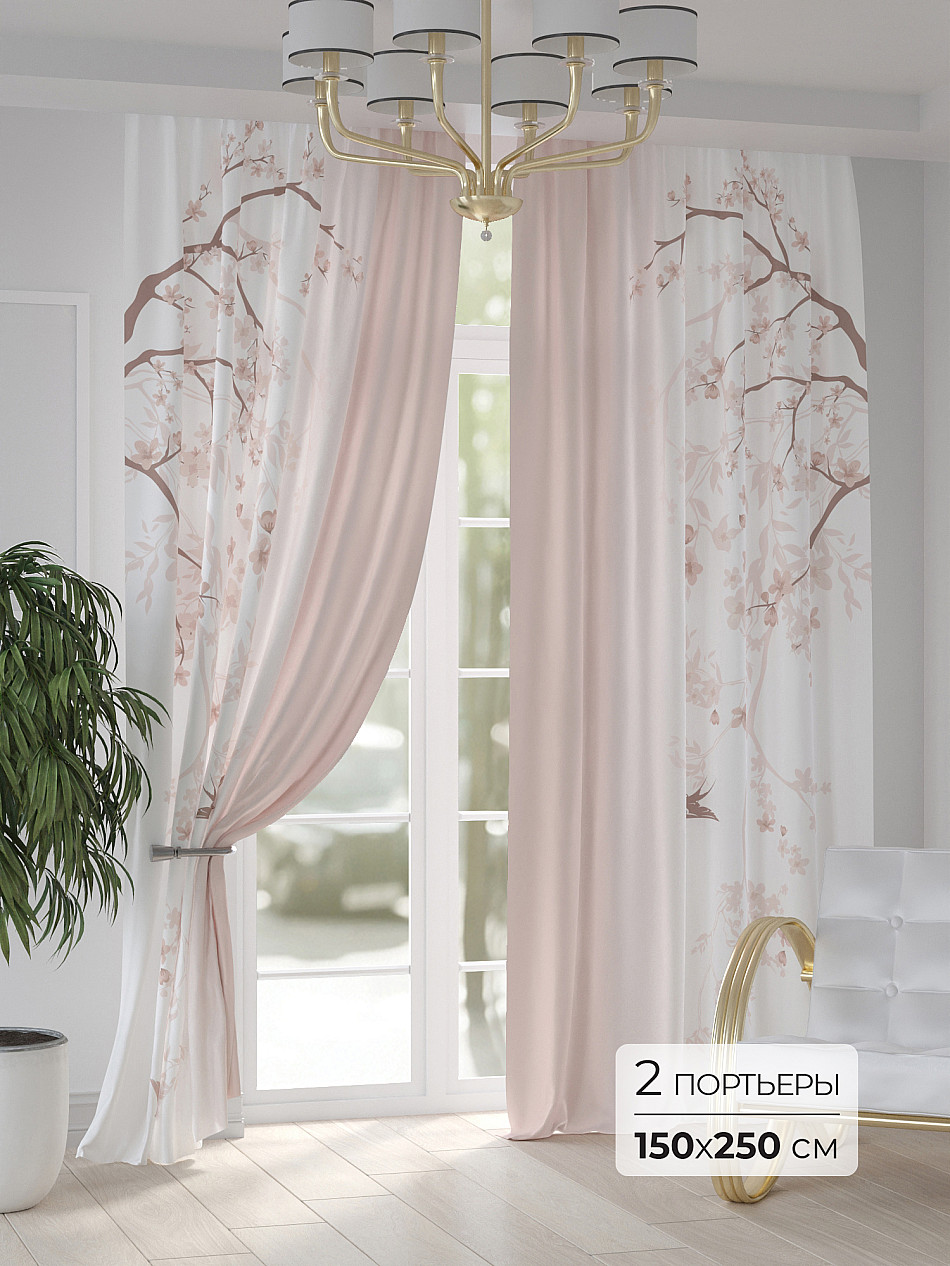 Портьера 2 шт. — 150х250 см. ( Изменить высоту) Крепление: шторная лента (крючки), кулиска Подробнее