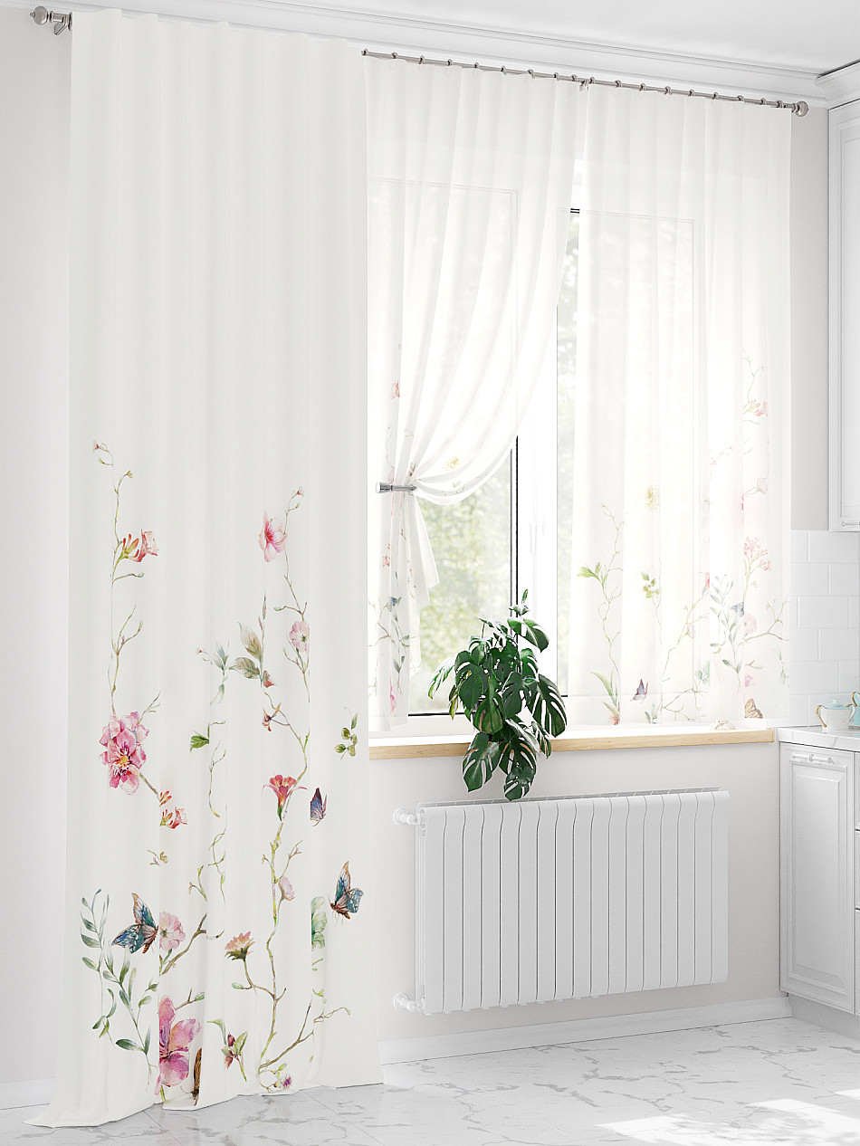 Портьера 1 шт. Ширина — 150 см., высота — 260 см. Подхват - доп.услуга. Комплект для интерьера с балконной дверью, состоит из легкой портьеры для двери и тюли для окна. Оригинальная ассиметричная конструкция оживит любое помещение. Красивая одиночная портьера украсит балконный проём и обеспечит удобный доступ к двери. Легкая вуаль с пышными складками создаст воздушный образ окна и защитит от прямых солнечных лучей, мягко рассеивая свет.