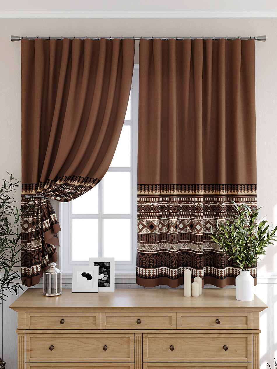 Портьеры 2 шт: Комплект штор из легкой портьерной ткани (габардин) оформлен печатным рисунком. Печатный рисунок дает широкие возможности обновить интерьер фактически нет требуя ремонта за счет огромного выбора. Ткани с печатным рисунком безопасны и не содержат токсичных веществ. Не смотря на то что, материал легкий, он имеет высокую плотность, мало загрязнятся и не требует особого ухода даже после стирки, что важно для кухонных занавесок. Шторы не выцветают, не растягиваются, превосходно драпируются, образуя струящиеся складки. Прекрасное решение для создания красоты и уюта с помощью уникальных дизайнов.