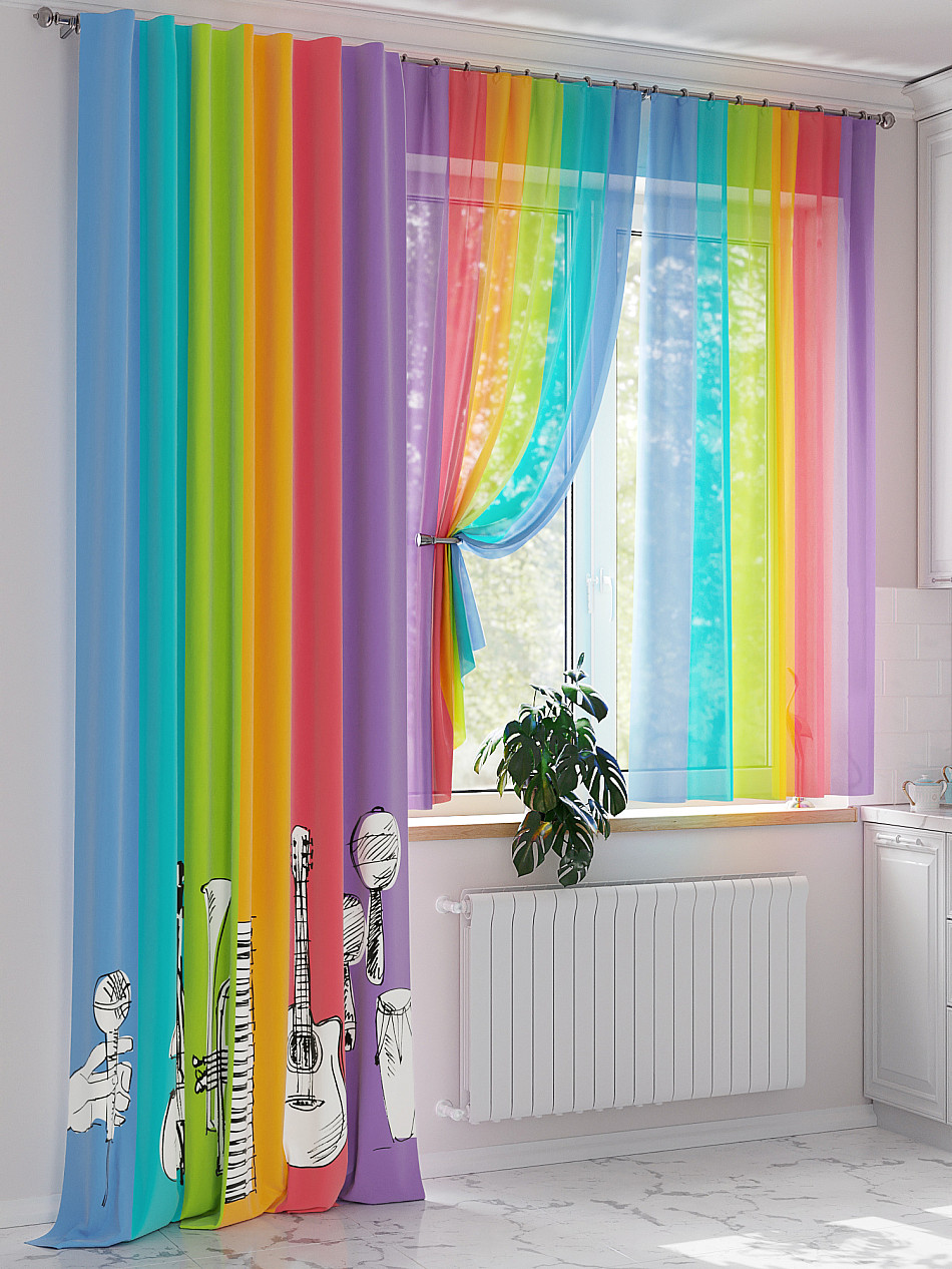 Портьера 1 шт. Подхват - доп.услуга. Комплект для интерьера с балконной дверью, состоит из легкой портьеры для двери и тюли для окна. Оригинальная ассиметричная конструкция оживит любое помещение. Красивая одиночная портьера украсит балконный проём и обеспечит удобный доступ к двери. Легкая вуаль с пышными складками создаст воздушный образ окна и защитит от прямых солнечных лучей, мягко рассеивая свет.