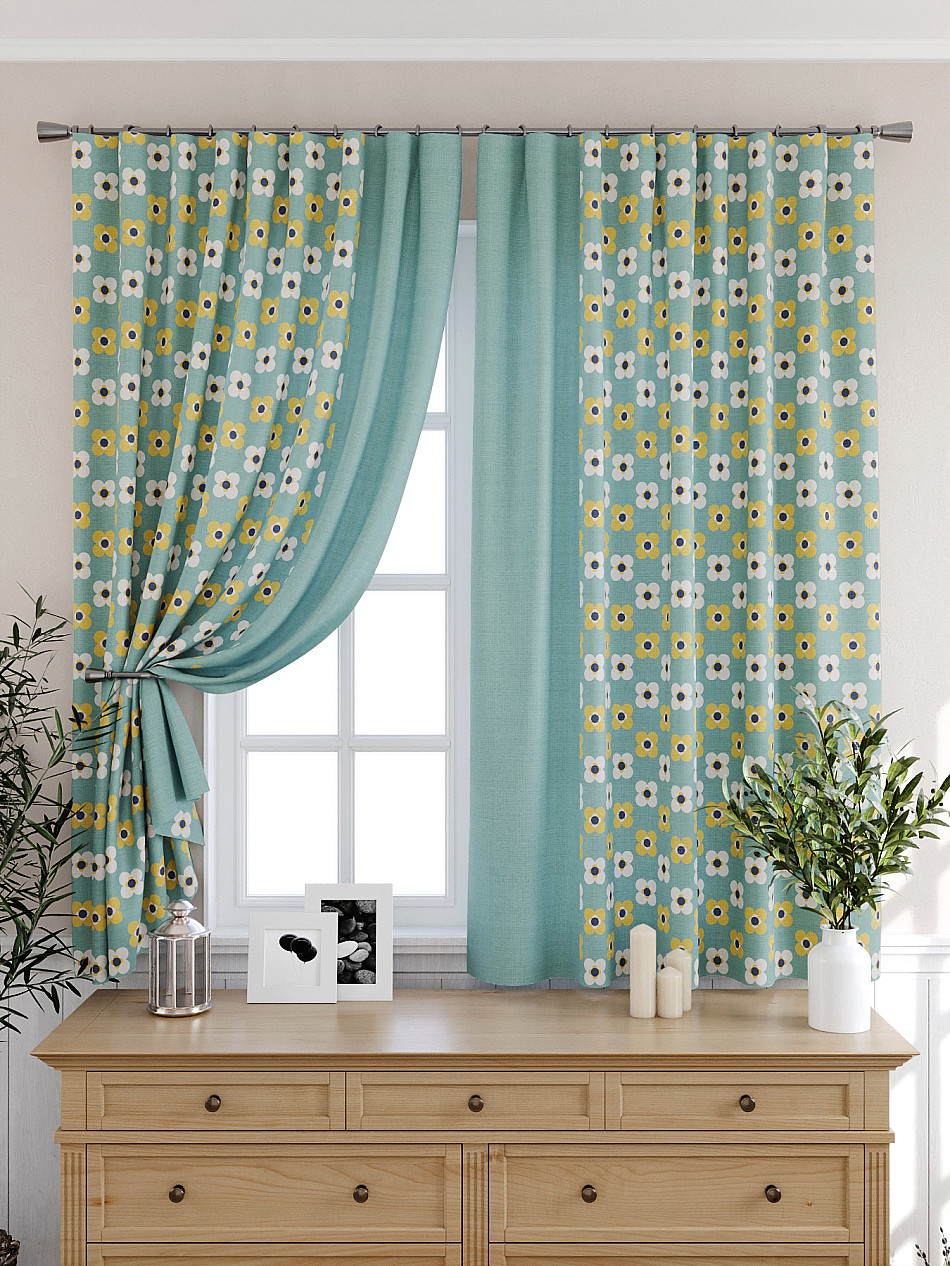 Портьеры 2 шт: Комплект штор из легкой портьерной ткани (габардин) оформлен печатным рисунком. Печатный рисунок дает широкие возможности обновить интерьер фактически нет требуя ремонта за счет огромного выбора. Ткани с печатным рисунком безопасны и не содержат токсичных веществ. Не смотря на то что, материал легкий, он имеет высокую плотность, мало загрязнятся и не требует особого ухода даже после стирки, что важно для кухонных занавесок. Шторы не выцветают, не растягиваются, превосходно драпируются, образуя струящиеся складки. Прекрасное решение для создания красоты и уюта с помощью уникальных дизайнов.
