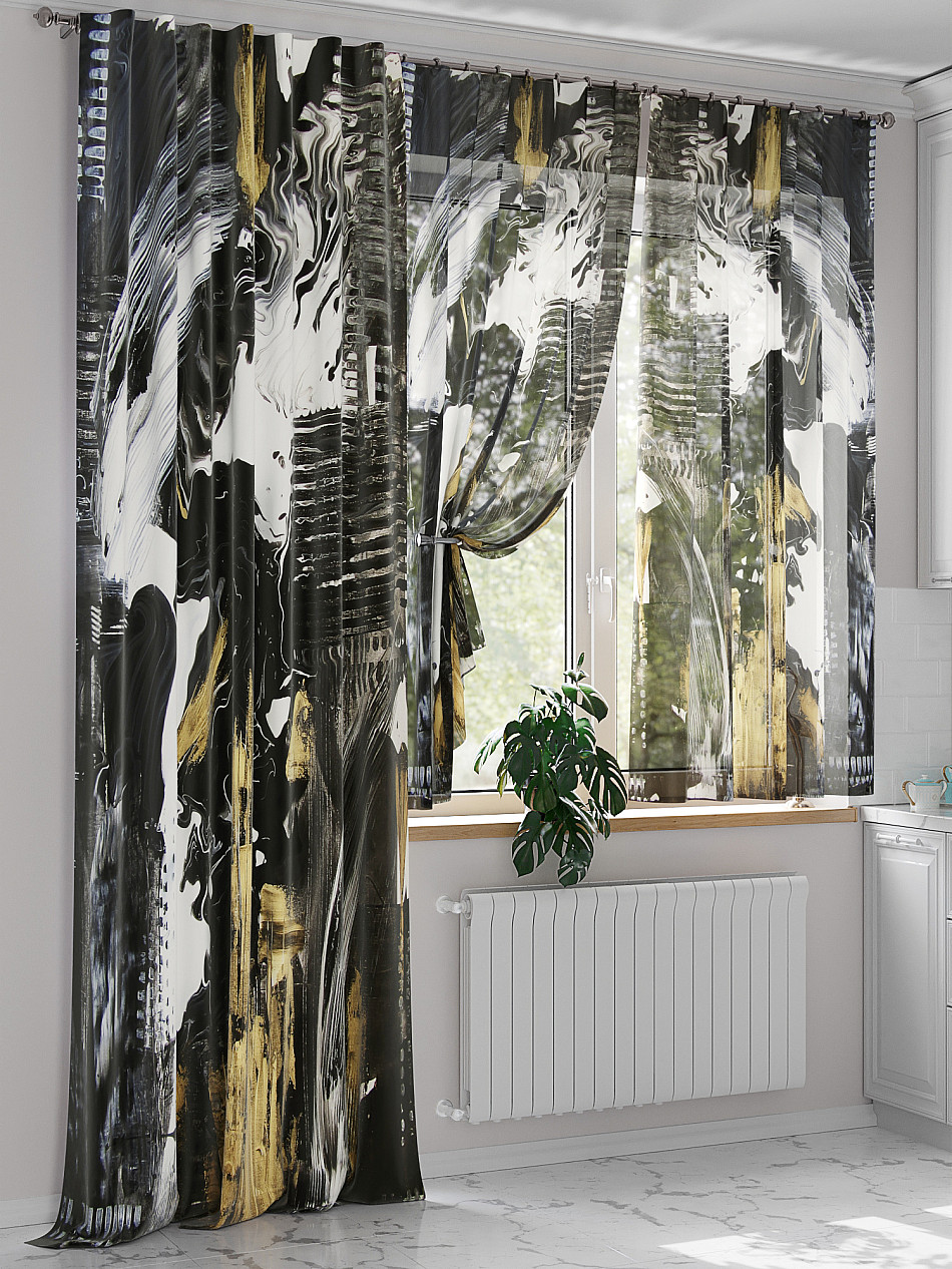 Портьера 1 шт. Подхват - доп.услуга. Комплект для интерьера с балконной дверью, состоит из легкой портьеры для двери и тюли для окна. Оригинальная ассиметричная конструкция оживит любое помещение. Красивая одиночная портьера украсит балконный проём и обеспечит удобный доступ к двери. Легкая вуаль с пышными складками создаст воздушный образ окна и защитит от прямых солнечных лучей, мягко рассеивая свет.