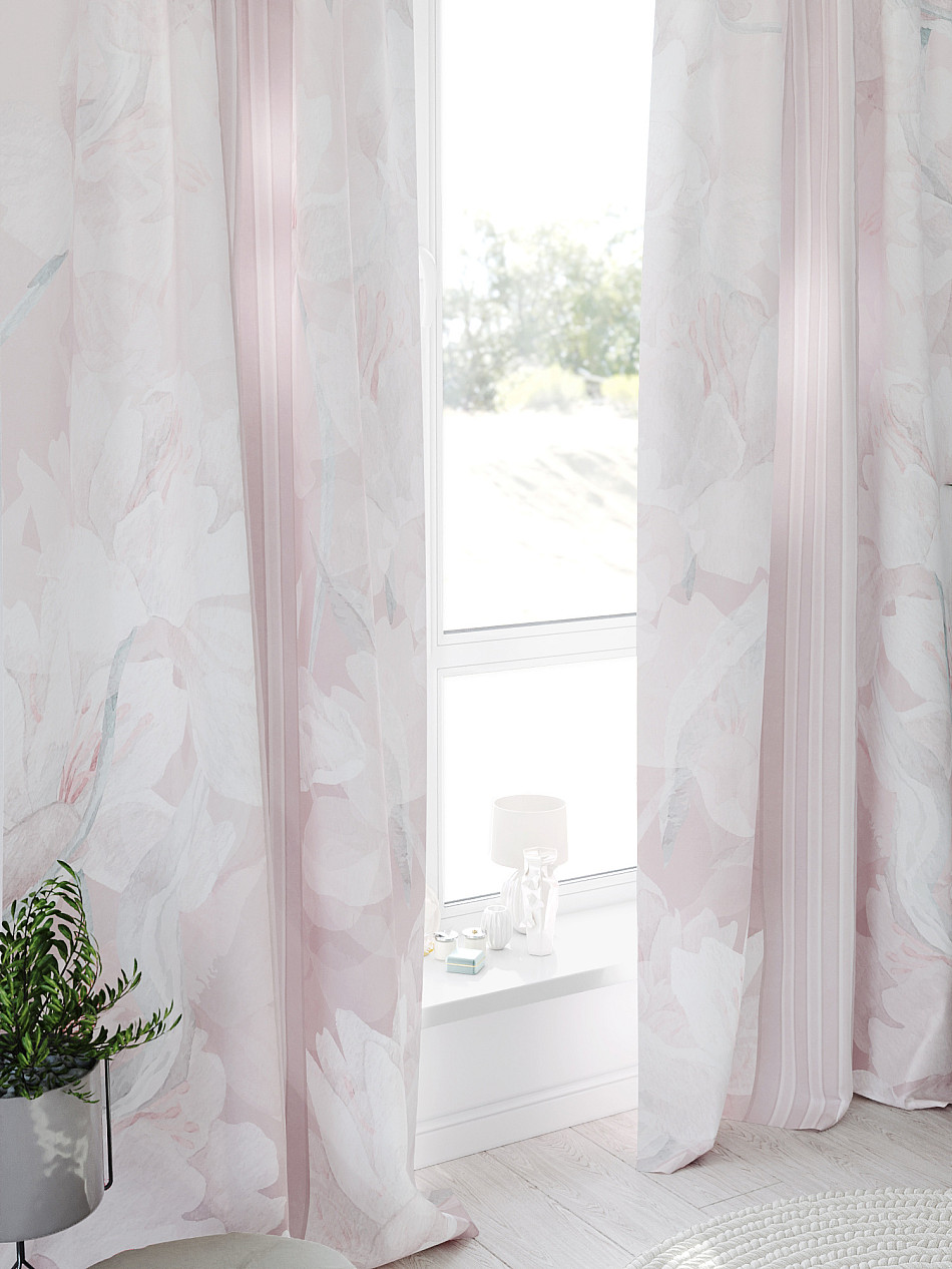 По верхнему краю портьеры пришита шторная тесьма 6 см, с ее помощью затянув узелки от кордовых нитей с обеих сторон и стянув их до нужного размера можно сформировать округлые складки, далее вставить крючки в кармашки и повесить на карниз. Обязательно проверьте кордовые нити – они должны быть надежно завязаны, в противном случае во время стягивания они могут вылететь. Шторная тесьма имеет два ряда кармашков, с их помощью можно регулировать не только длину, но и ширину. Такое крепление подходит для всех типов карнизов.