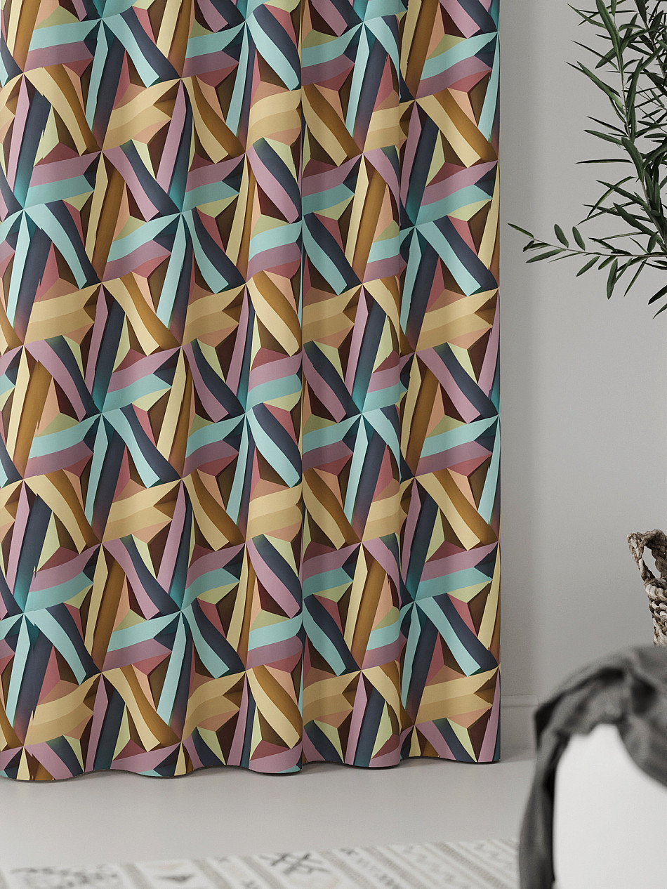 Абстракция Геометрия Один цвет Современный Однотонные с элементами Фото принтАксессуары для оформления штор: