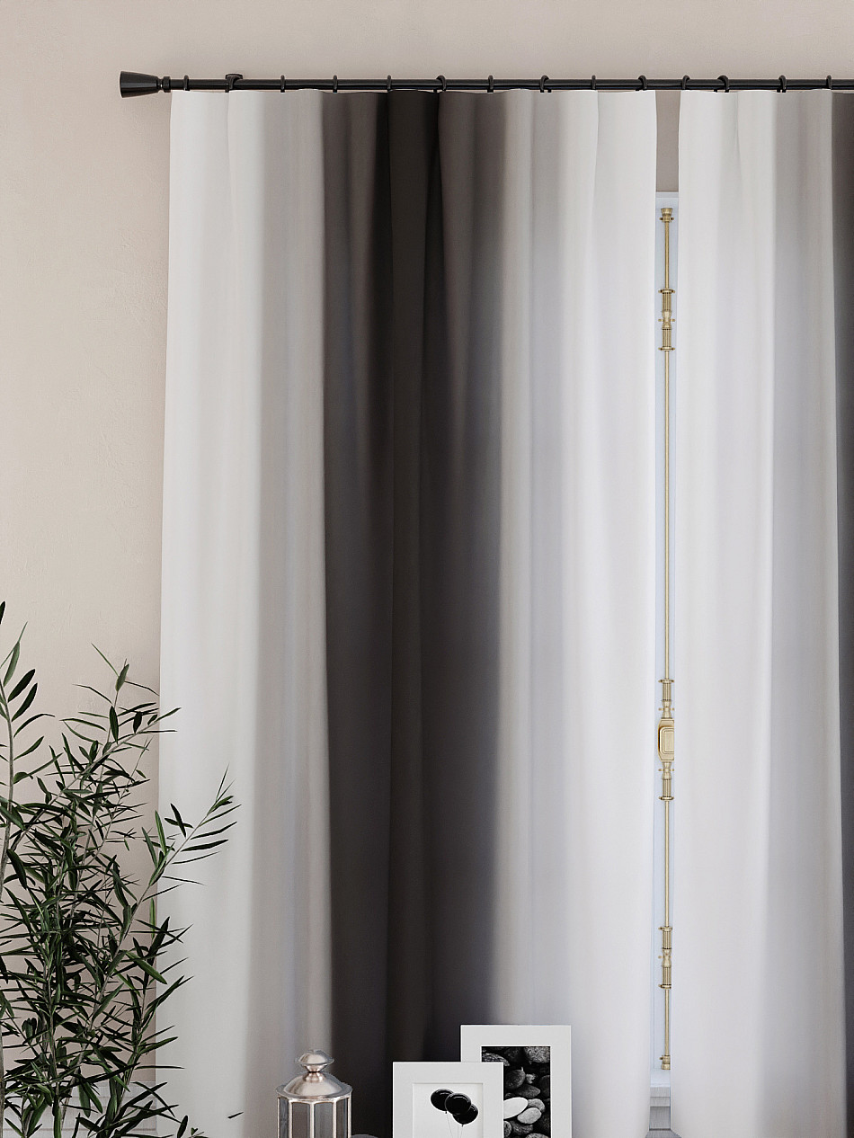 По верхнему краю портьер пришита шторная тесьма 6 см, с ее помощью затянув узелки от кордовых нитей с обеих сторон и стянув их до нужного размера можно сформировать округлые складки, далее вставить крючки в кармашки и повесить на карниз. Обязательно проверьте кордовые нити – они должны быть надежно завязаны, в противном случае во время стягивания они могут вылететь. Шторная тесьма имеет два ряда кармашков, с их помощью можно регулировать не только длину, но и ширину. Такое крепление подходит для всех типов карнизов.