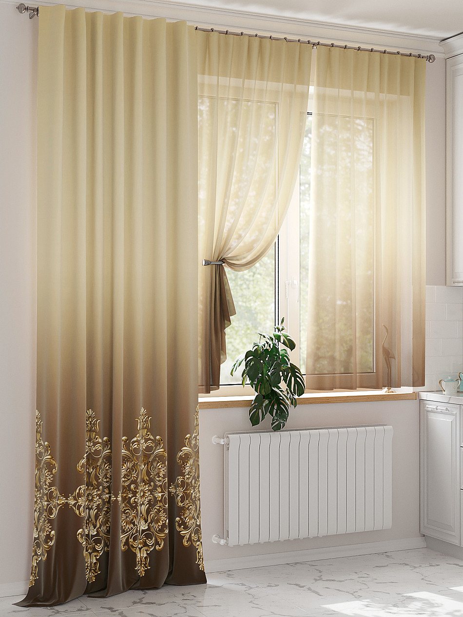 Портьера 150х260 см. — 1 шт., вуаль 150х180 см — 2 шт. ( Уменьшить высоту ) Подробнее