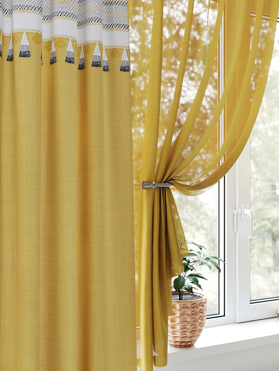 - Состав комплекта Портьера 150х270 см — 1 шт., вуаль 150х180 см — 2 шт.