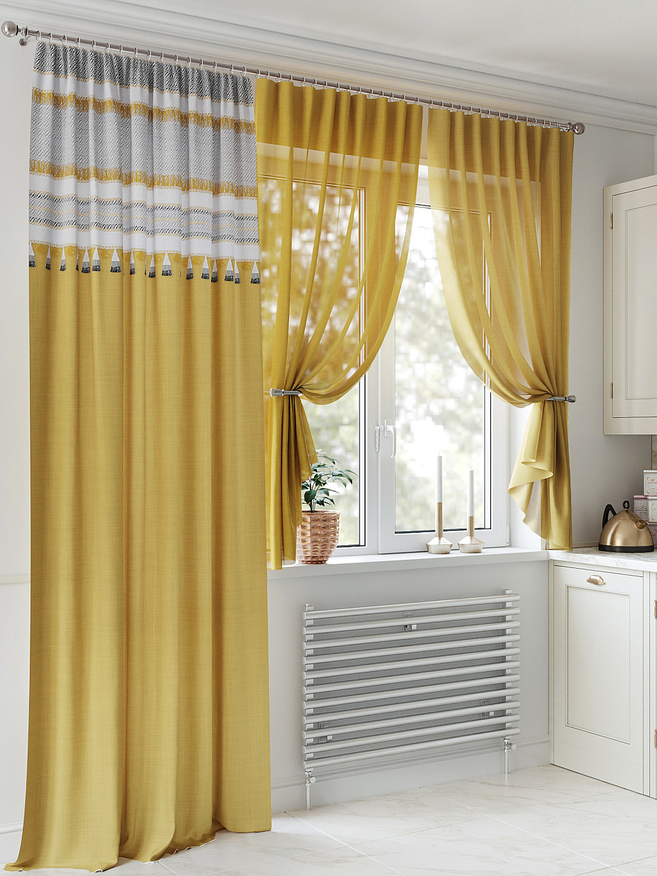 Портьера 1 шт. Подхват - доп.услуга. Комплект для интерьера с балконной дверью, состоит из легкой портьеры для двери и тюли для окна. Оригинальная ассиметричная конструкция оживит любое помещение. Красивая одиночная портьера украсит балконный проём и обеспечит удобный доступ к двери. Легкая вуаль с пышными складками создаст воздушный образ окна и защитит от прямых солнечных лучей, мягко рассеивая свет.