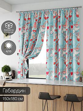 Комплект штор из легкой портьерной ткани (габардин) оформлен печатным рисунком. Печатный рисунок дает широкие возможности обновить интерьер фактически нет требуя ремонта за счет огромного выбора. Ткани с печатным рисунком безопасны и не содержат токсичных веществ. Не смотря на то что, материал легкий, он имеет высокую плотность, мало загрязнятся и не требует особого ухода даже после стирки, что важно для кухонных занавесок. Шторы не выцветают, не растягиваются, превосходно драпируются, образуя струящиеся складки. Прекрасное решение для создания красоты и уюта с помощью уникальных дизайнов.