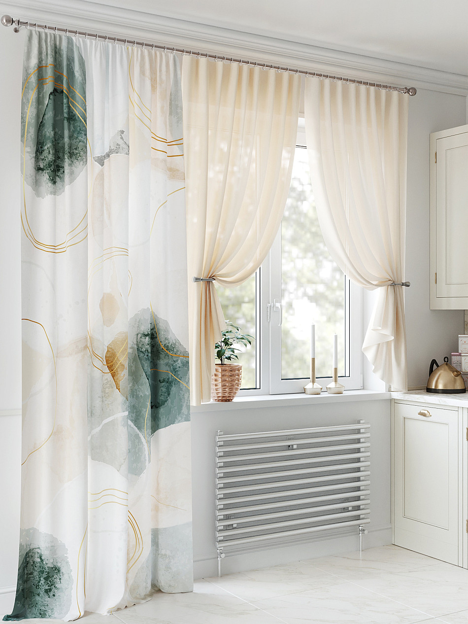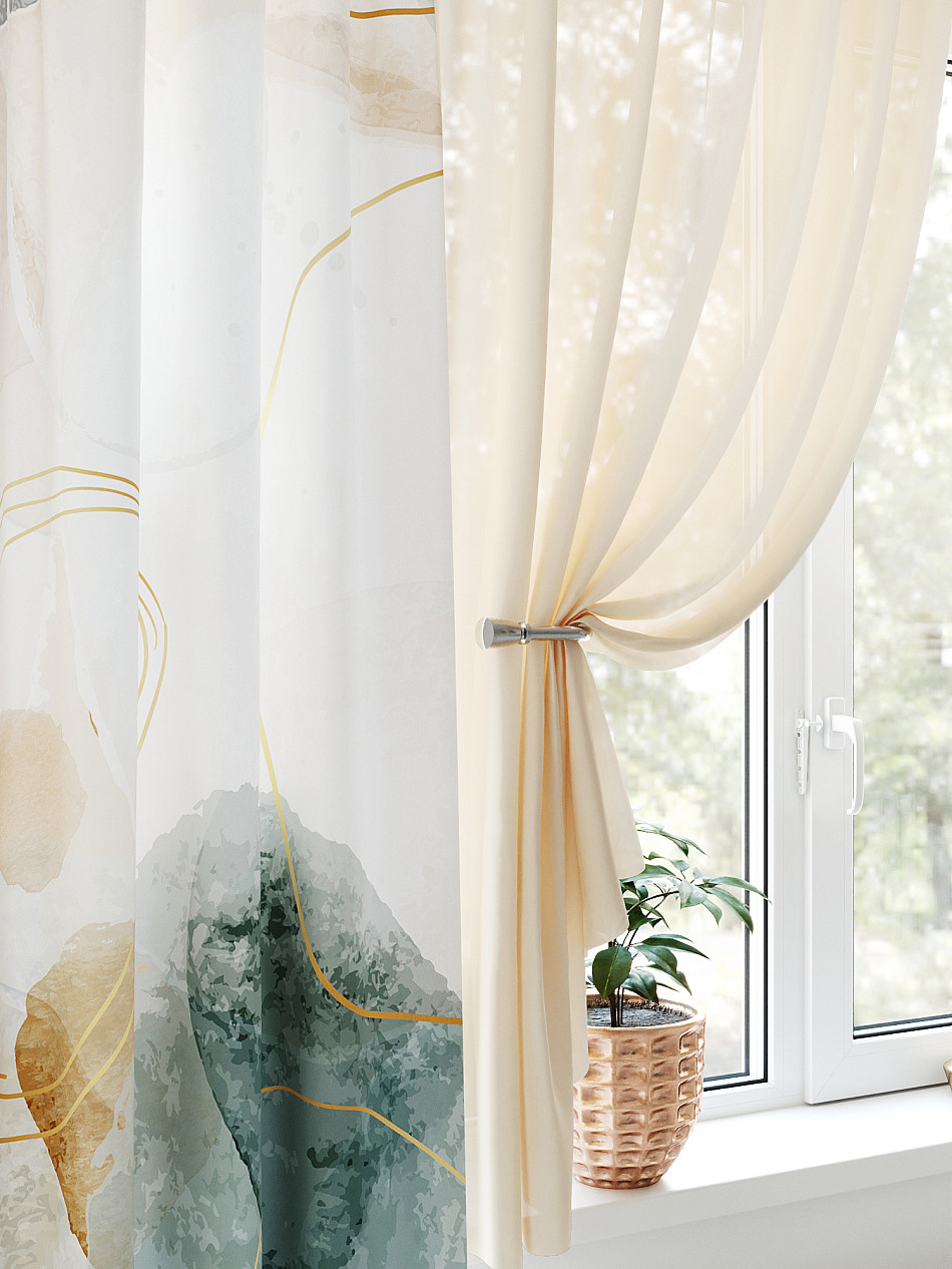 - Вуаль портьера для комнаты с принтом