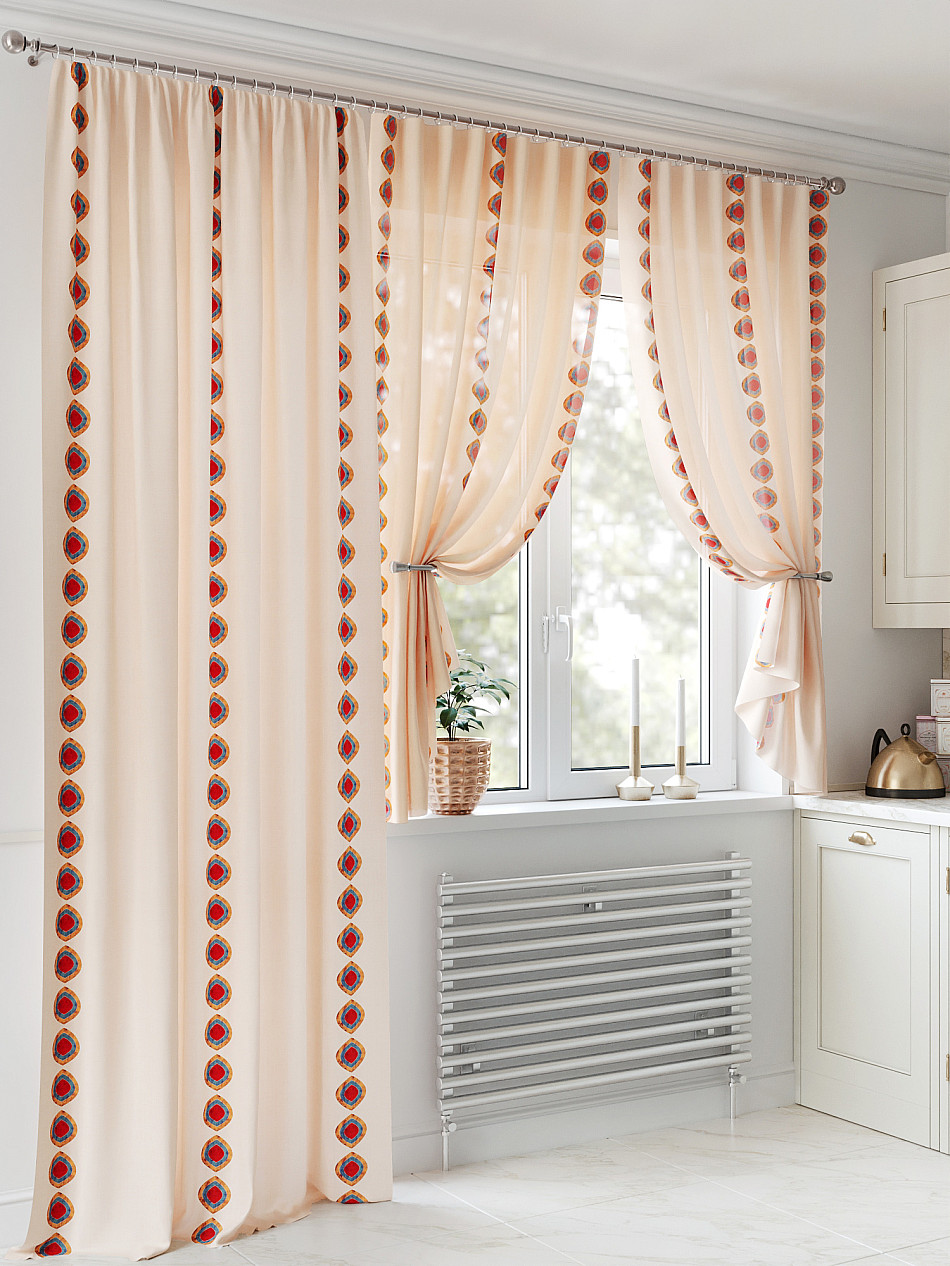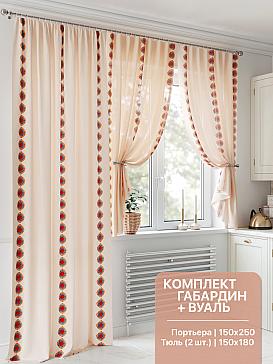 Портьера 150х250 см — 1 шт., вуаль 150х180 см — 2 шт. ( Уменьшить высоту ) Крепление: шторная лента (крючки), кулиска Подробнее