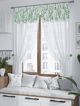 Комплект штор из белой вуали дополнен портьерной тканью (габардин) с печатным рисунком. Шторы не выцветают, не растягиваются, превосходно драпируются образуя струящиеся складки. Прекрасное решение для создания красоты и уюта с помощью уникальных дизайнов.