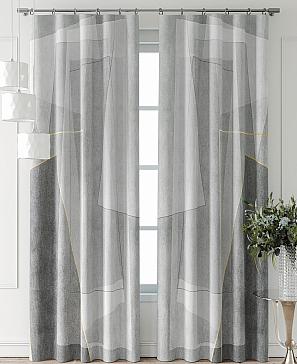 Тюль 2 шт.: Легкая основа (вуаль) оформлена геометрическим рисунком. Ширина — 150 см., высота — 180 см., крепление — шторная лента (крючки).