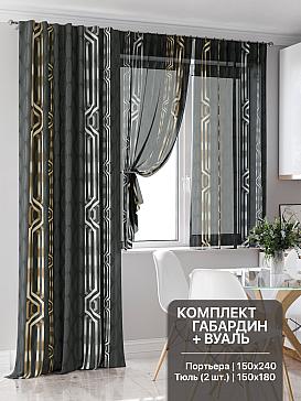 - Состав комплекта Портьера 150х240 см — 1 шт., вуаль 150х180 см — 2 шт.