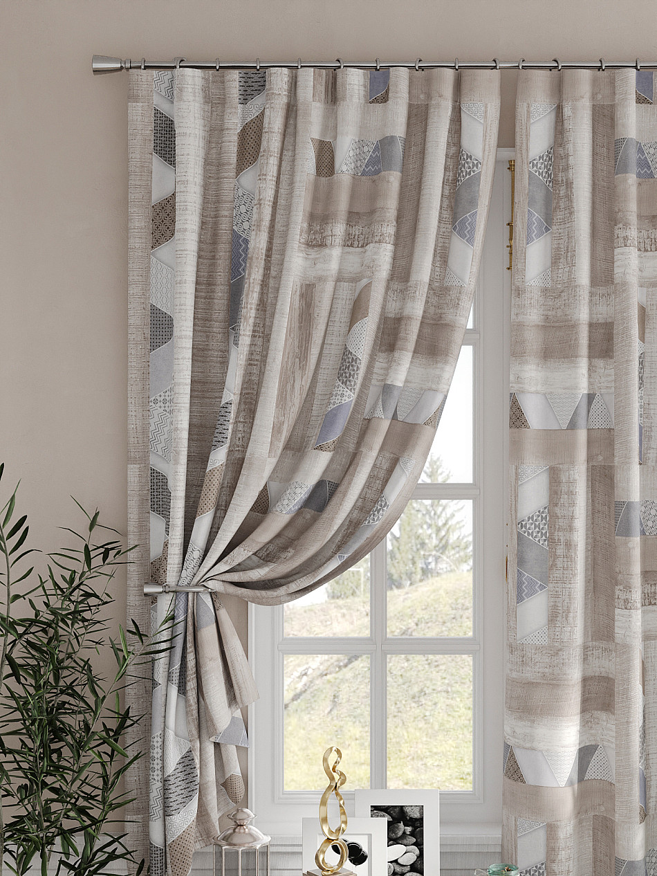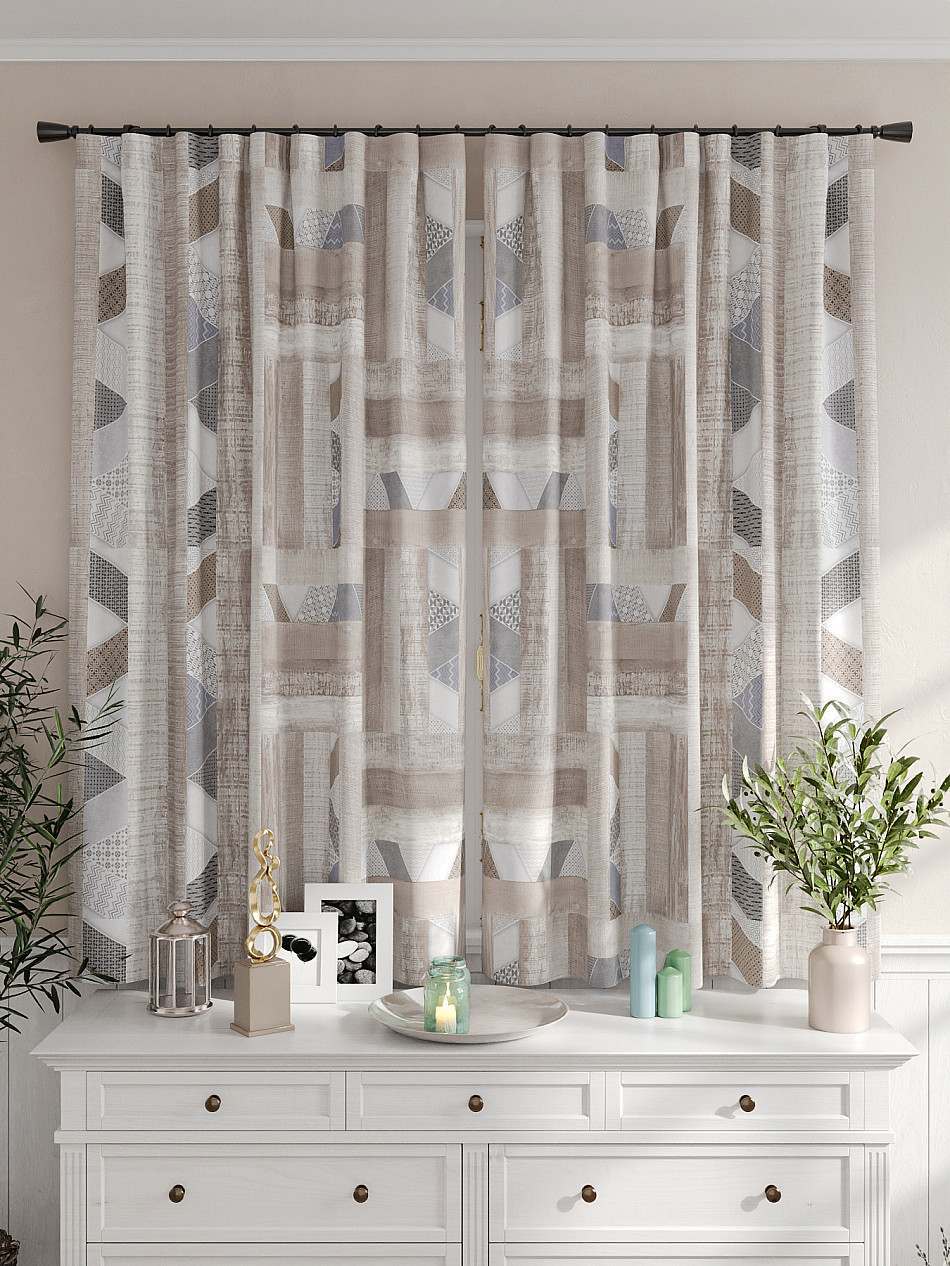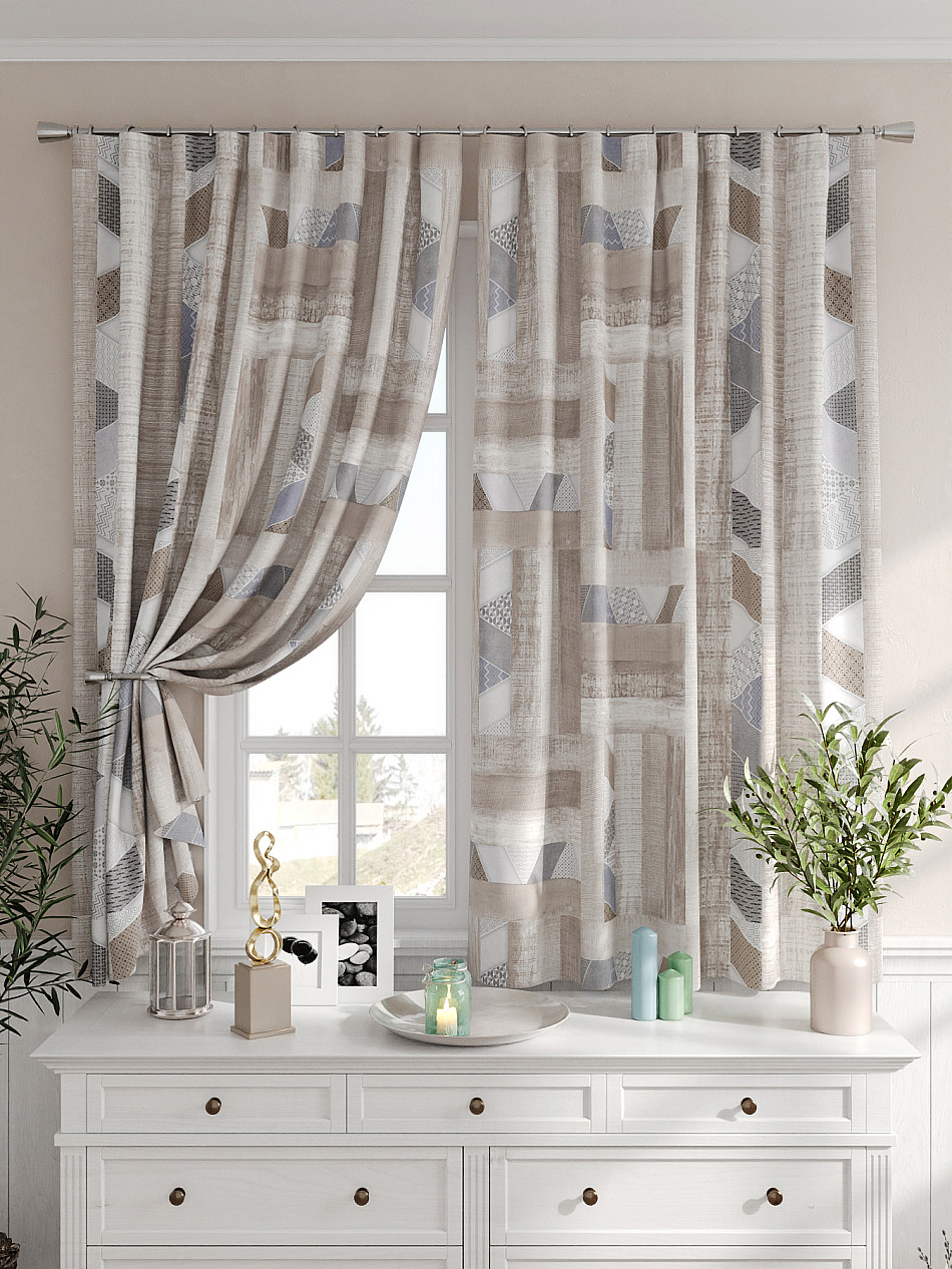 Портьеры 2 шт. Комплект штор из легкой портьерной ткани (габардин) оформлен печатным рисунком. Печатный рисунок дает широкие возможности обновить интерьер фактически не требуя ремонта за счет огромного выбора. Ткани с печатным рисунком безопасны и не содержат токсичных веществ. Не смотря на то, что материал легкий, он имеет высокую плотность, мало загрязнятся и не требует особого ухода даже после стирки, что важно для кухонных занавесок. Шторы не выцветают, не растягиваются, превосходно драпируются, образуя струящиеся складки. Прекрасное решение для создания красоты и уюта с помощью уникальных дизайнов.