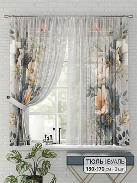 Тюль 2 шт. Подхват - доп.услуга. Легкая основа (вуаль) оформлена принтом. Вуаль с матовой полупрозрачной текстурой. Отличается особым шиком, идеально подходит для создания воздушных штор. Придает ощущение свежести, хорошо пропускает воздух. Ткань неприхотлива в уходе, хорошо стирается без разрушения волокон с течением времени за счет высокого кручения нитей.