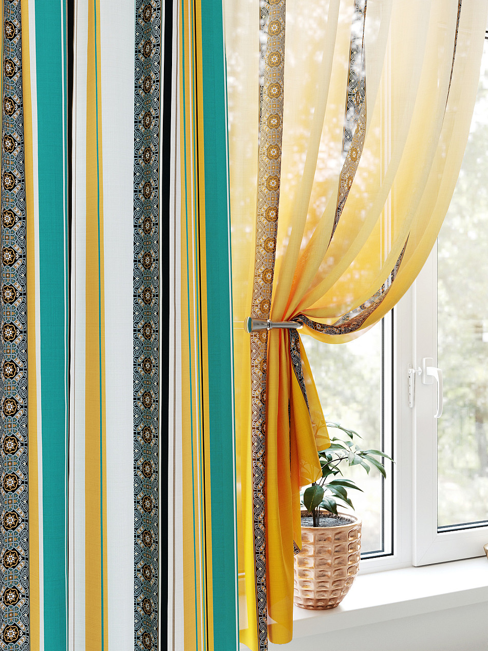 - Состав комплекта Портьера 150х270 см — 1 шт., вуаль 150х180 см — 2 шт.
