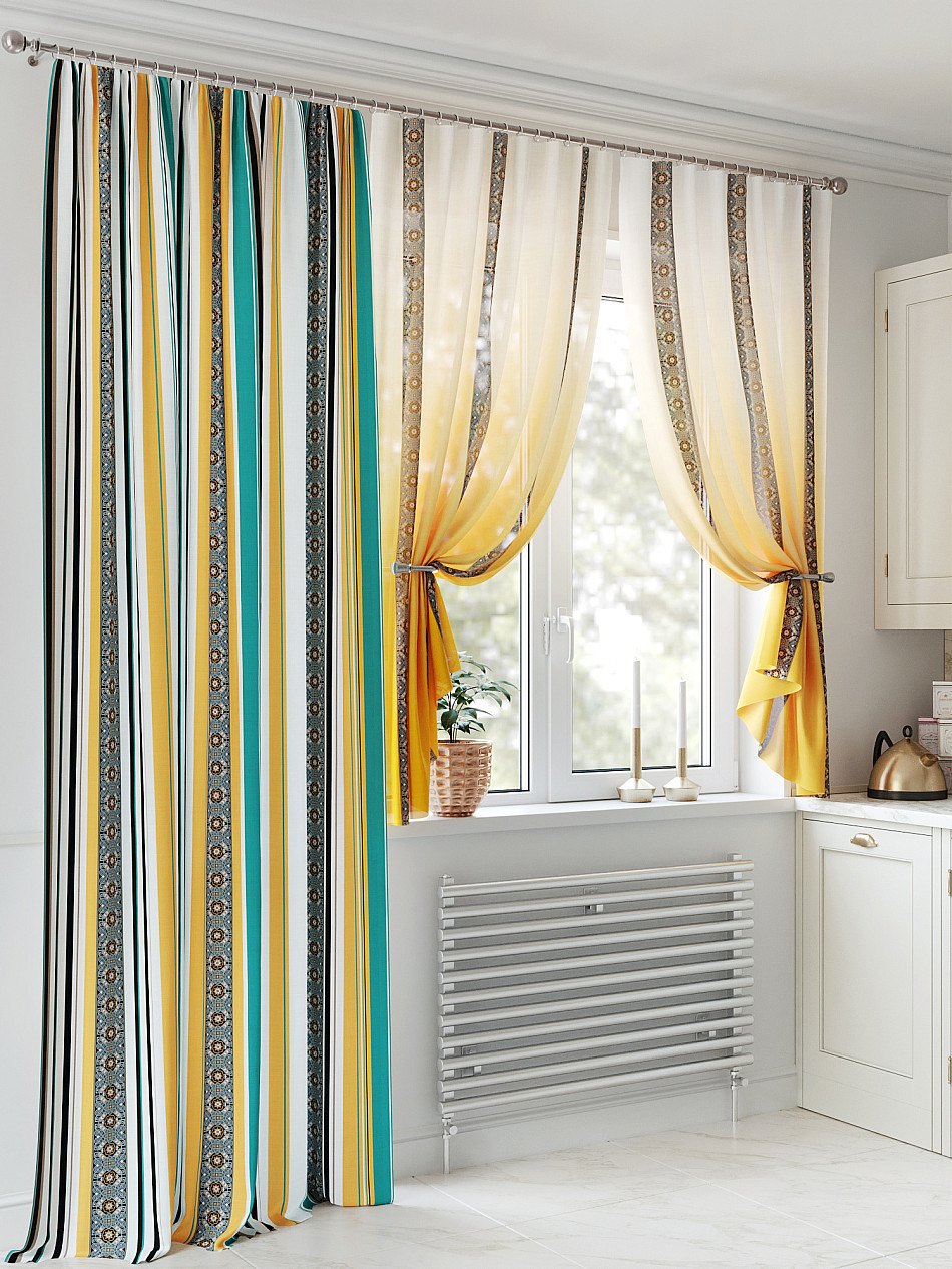 Портьера 150х270 см — 1 шт., вуаль 150х180 см — 2 шт. ( Уменьшить высоту ) Крепление: шторная лента (крючки), кулиска Подробнее