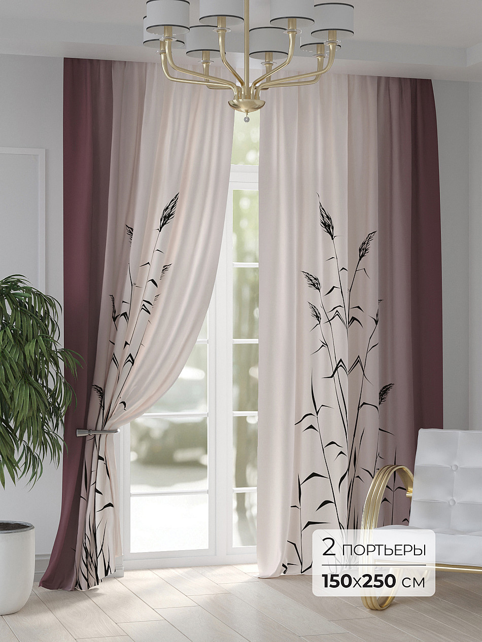 Портьера 2 шт. — 150х250 см. ( Изменить высоту) Крепление: шторная лента (крючки), кулиска Подробнее