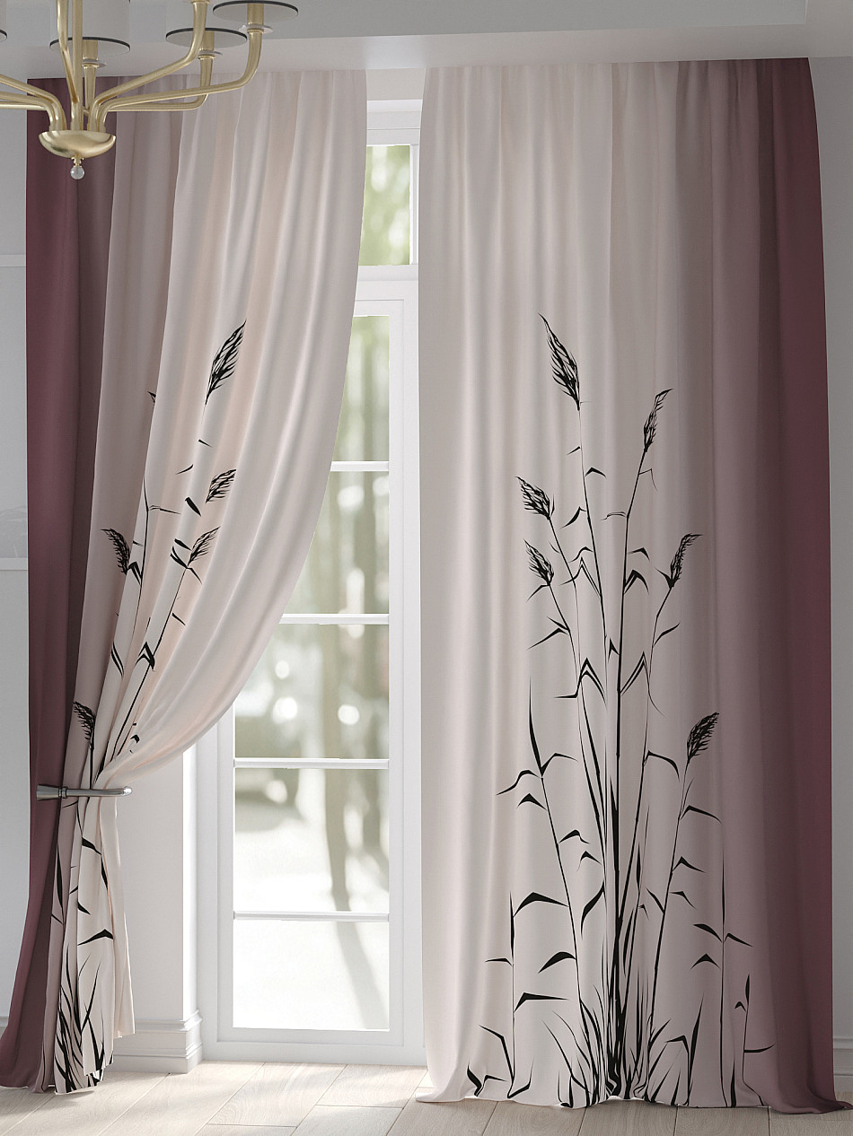 Портьера 2 шт. Подхват - доп.услуга. Комплект штор из легкой портьерной ткани (габардин) оформлен печатным рисунком. Печатный рисунок дает широкие возможности обновить интерьер фактически нет требуя ремонта за счет огромного выбора. Ткани с печатным рисунком безопасны и не содержат токсичных веществ. Не смотря на то что, материал легкий, он имеет высокую плотность, мало загрязнятся и не требует особого ухода даже после стирки, что важно для кухонных занавесок. Шторы не выцветают, не растягиваются, превосходно драпируются, образуя струящиеся складки. Прекрасное решение для создания красоты и уюта с помощью уникальных дизайнов.