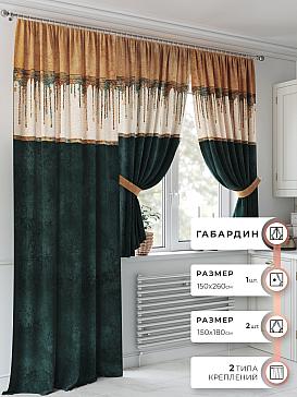 Портьера 150х260 см — 1 шт., портьера 150х180 см — 2 шт. ( Уменьшить высоту ) Крепление: шторная лента (крючки), кулиска Подробнее