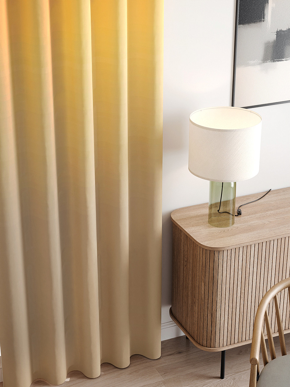 Габардин представляет собой целую группу тканей, которые отличаются содержанием и сочетанием различных волокон – хлопка, шелка, шерсти или синтетики. В зависимости от состава материала, шторы из габардина могут быть разными по плотности и внешнему виду, но всегда отличаются характерным декоративным рубчиком на поверхности. Габардин – идеальная ткань для пошива штор, поскольку она отлично дышит, не мнется, легкая и мягкая на ощупь, но при этом прочная и хорошо защищает от солнечных лучей.