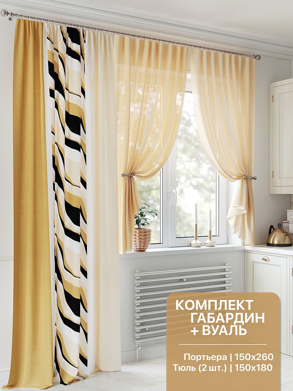 Портьера 150х260 см. — 1 шт., вуаль 150х180 см — 2 шт. ( Уменьшить высоту ) Подробнее