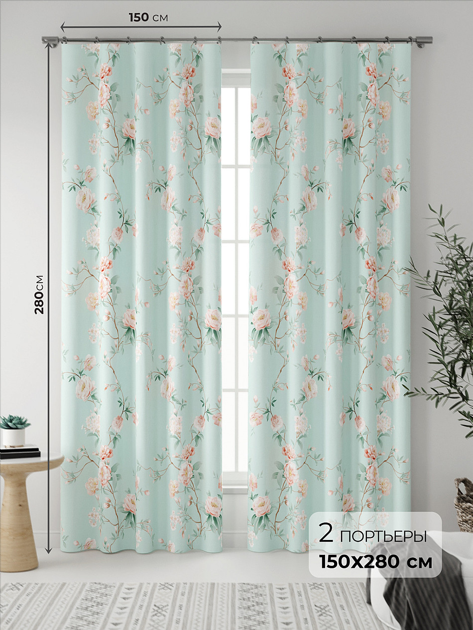Портьера 2 шт. — 150х280 см. ( Уменьшить высоту ) Крепление: шторная лента (крючки), кулиска Подробнее