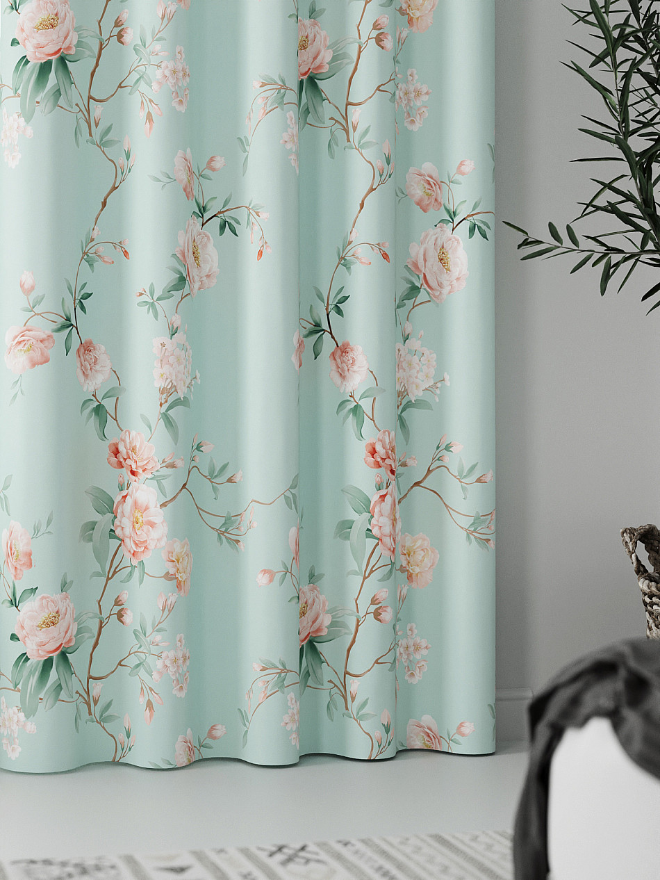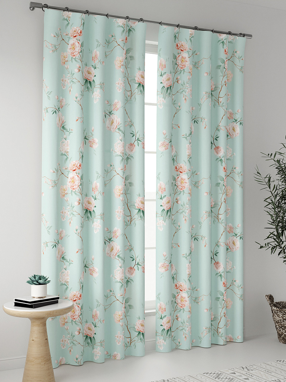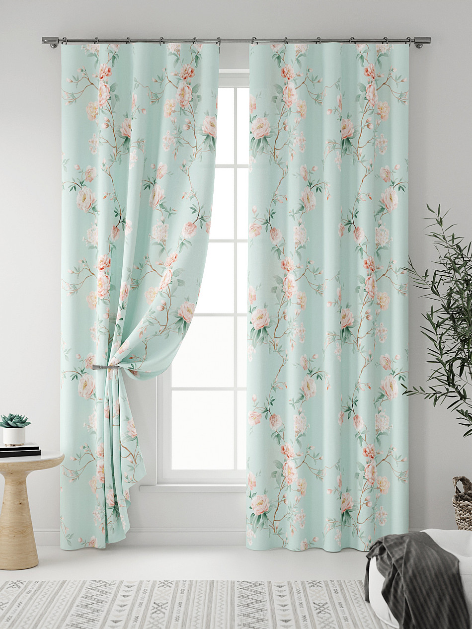 Комплект штор из легкой портьерной ткани (габардин) оформлен печатным рисунком. Печатный рисунок дает широкие возможности обновить интерьер фактически нет требуя ремонта за счет огромного выбора. Ткани с печатным рисунком безопасны и не содержат токсичных веществ. Не смотря на то что, материал легкий, он имеет высокую плотность, мало загрязнятся и не требует особого ухода даже после стирки, что важно для кухонных занавесок. Шторы не выцветают, не растягиваются, превосходно драпируются, образуя струящиеся складки. Прекрасное решение для создания красоты и уюта с помощью уникальных дизайнов.