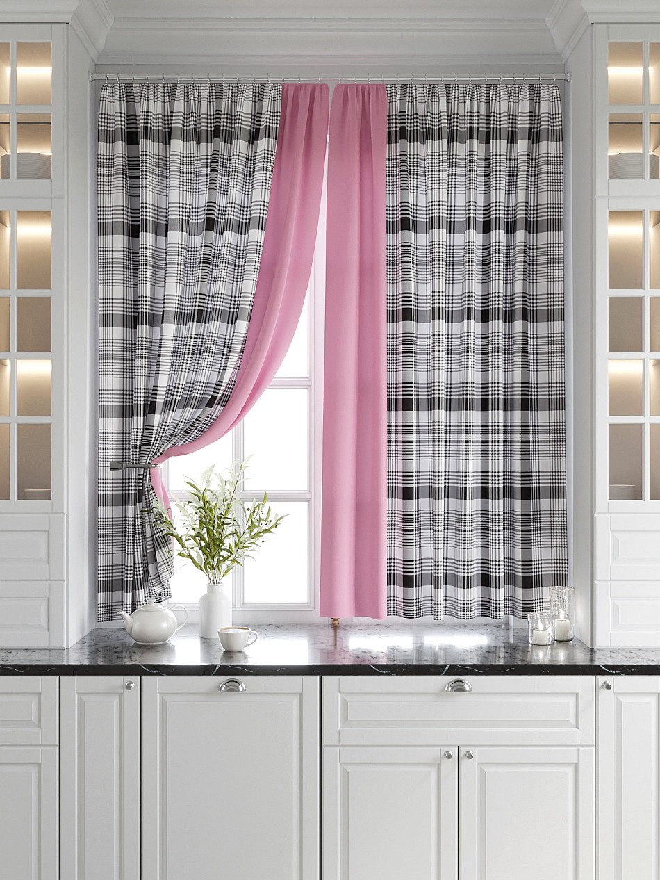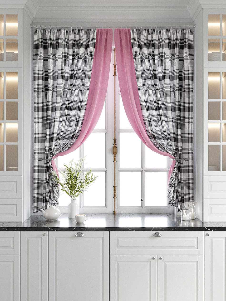 Комплект штор из легкой портьерной ткани (габардин) оформлен печатным рисунком. Печатный рисунок дает широкие возможности обновить интерьер фактически нет требуя ремонта за счет огромного выбора. Ткани с печатным рисунком безопасны и не содержат токсичных веществ. Не смотря на то что, материал легкий, он имеет высокую плотность, мало загрязнятся и не требует особого ухода даже после стирки, что важно для кухонных занавесок. Шторы не выцветают, не растягиваются, превосходно драпируются, образуя струящиеся складки. Прекрасное решение для создания красоты и уюта с помощью уникальных дизайнов.
