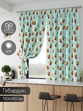 Комплект штор из легкой портьерной ткани (габардин) оформлен печатным рисунком. Печатный рисунок дает широкие возможности обновить интерьер фактически нет требуя ремонта за счет огромного выбора. Ткани с печатным рисунком безопасны и не содержат токсичных веществ. Не смотря на то что, материал легкий, он имеет высокую плотность, мало загрязнятся и не требует особого ухода даже после стирки, что важно для кухонных занавесок. Шторы не выцветают, не растягиваются, превосходно драпируются, образуя струящиеся складки. Прекрасное решение для создания красоты и уюта с помощью уникальных дизайнов.