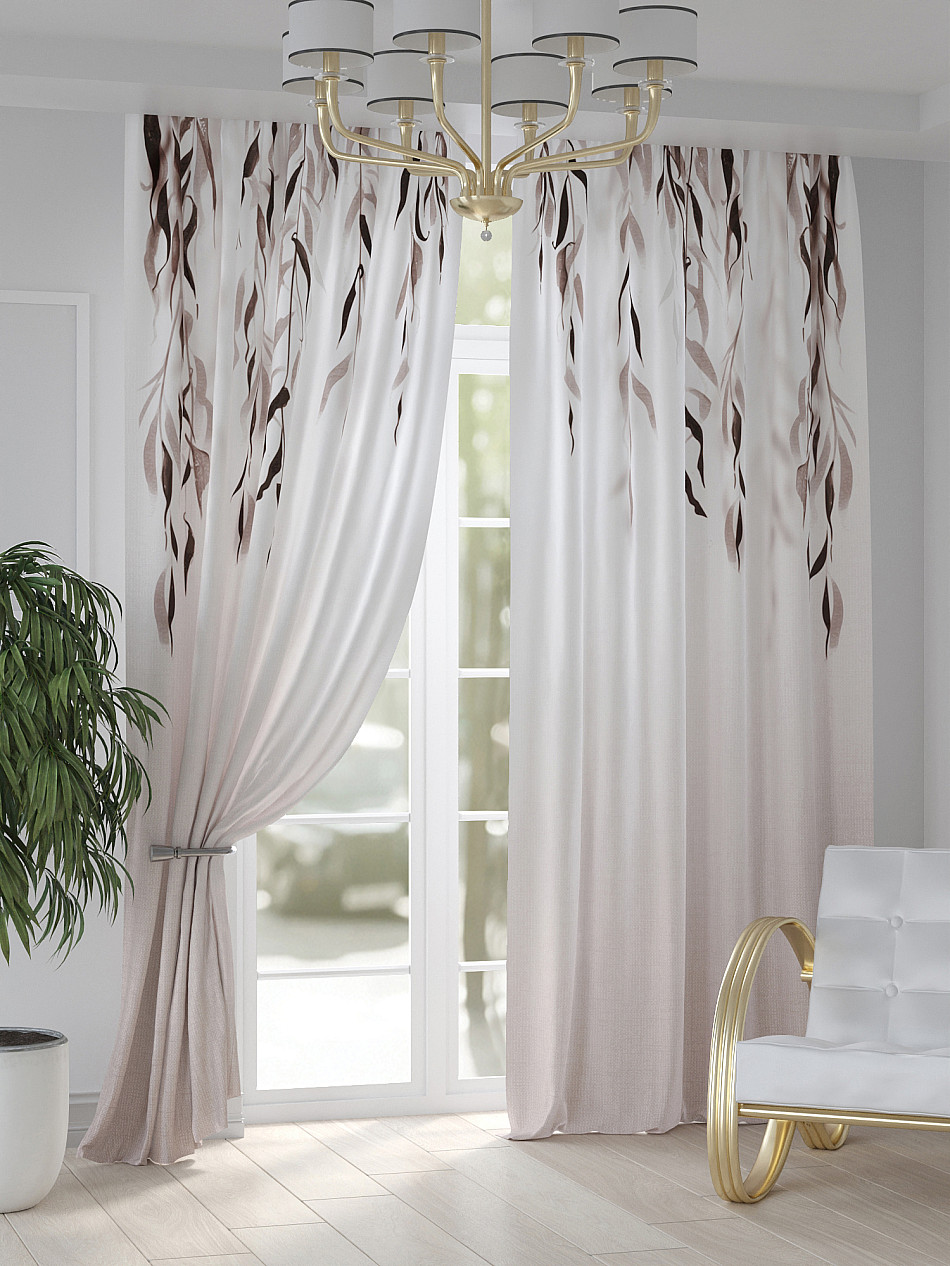 Портьера 2 шт. — 150х250 см. ( Изменить высоту) Крепление: шторная лента (крючки), кулиска Подробнее