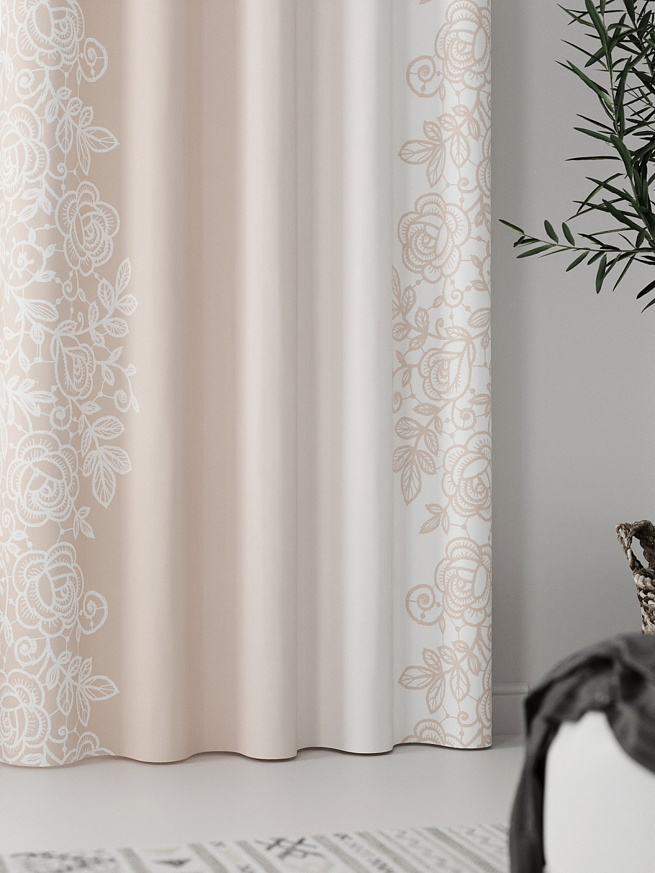 Комплект штор из легкой портьерной ткани (габардин) оформлен печатным рисунком. Печатный рисунок дает широкие возможности обновить интерьер фактически нет требуя ремонта за счет огромного выбора. Ткани с печатным рисунком безопасны и не содержат токсичных веществ. Не смотря на то что, материал легкий, он имеет высокую плотность, мало загрязнятся и не требует особого ухода даже после стирки, что важно для кухонных занавесок. Шторы не выцветают, не растягиваются, превосходно драпируются, образуя струящиеся складки. Прекрасное решение для создания красоты и уюта с помощью уникальных дизайнов.