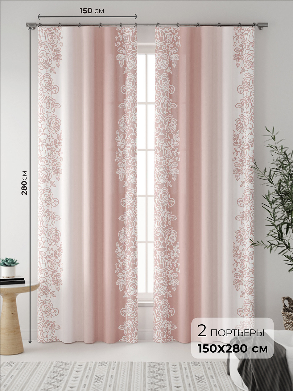 Портьера 2 шт. — 150х280 см. ( Уменьшить высоту ) Крепление: шторная лента (крючки), кулиска Подробнее