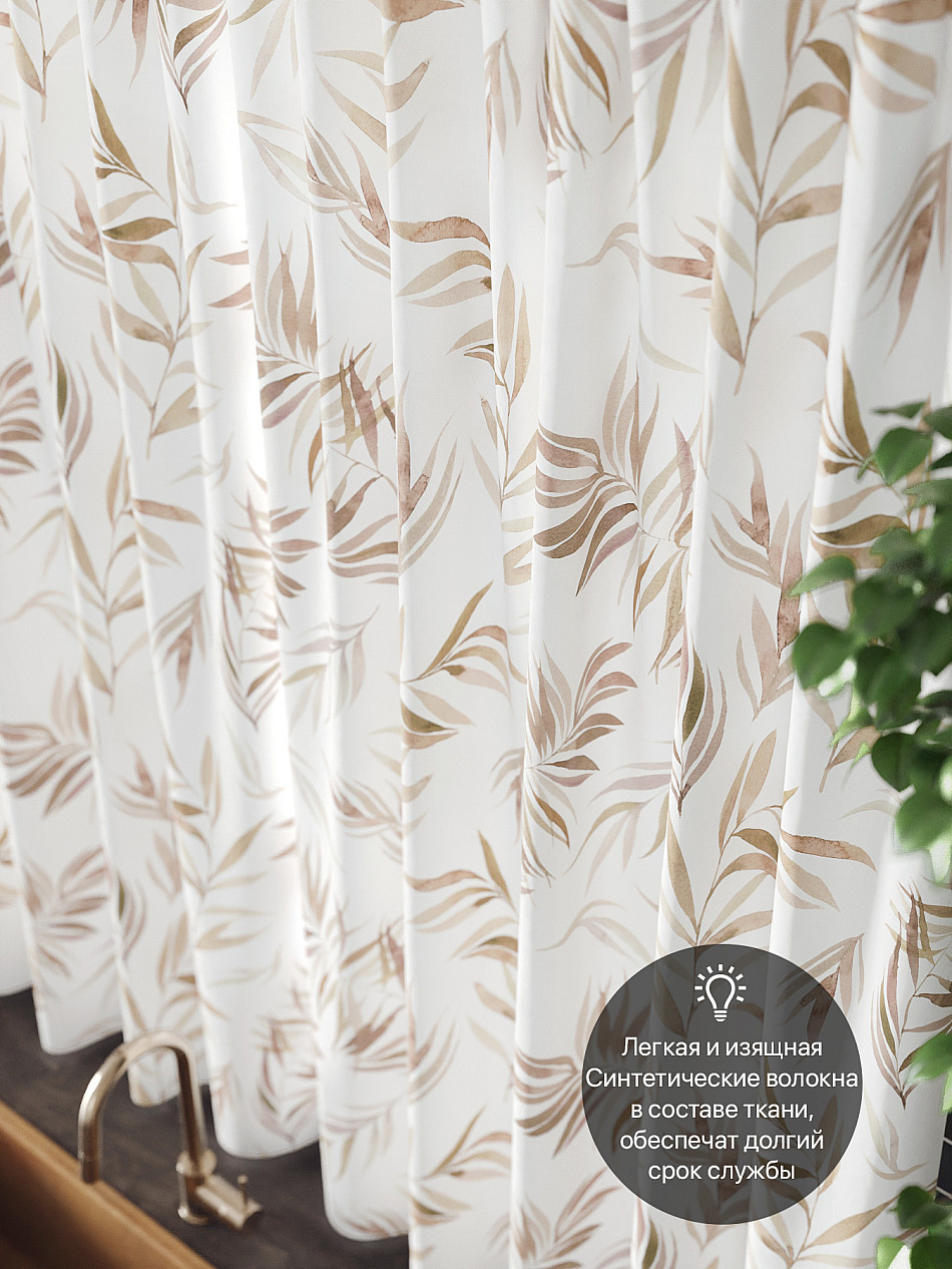 Комплект штор из легкой портьерной ткани (габардин) оформлен печатным рисунком. Печатный рисунок дает широкие возможности обновить интерьер фактически нет требуя ремонта за счет огромного выбора. Ткани с печатным рисунком безопасны и не содержат токсичных веществ. Не смотря на то что, материал легкий, он имеет высокую плотность, мало загрязнятся и не требует особого ухода даже после стирки, что важно для кухонных занавесок. Шторы не выцветают, не растягиваются, превосходно драпируются, образуя струящиеся складки. Прекрасное решение для создания красоты и уюта с помощью уникальных дизайнов.
