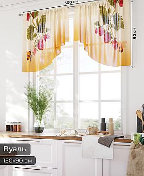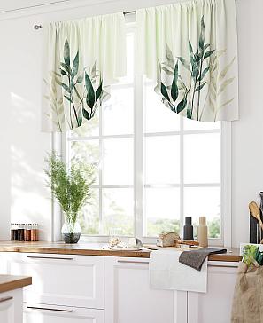 Комплект штор из легкой портьерной ткани (габардин) оформлен печатным рисунком. Печатный рисунок дает широкие возможности обновить интерьер фактически нет требуя ремонта за счет огромного выбора. Ткани с печатным рисунком безопасны и не содержат токсичных веществ. Не смотря на то что, материал легкий, он имеет высокую плотность, мало загрязнятся и не требует особого ухода даже после стирки, что важно для кухонных занавесок. Шторы не выцветают, не растягиваются, превосходно драпируются, образуя струящиеся складки. Прекрасное решение для создания красоты и уюта с помощью уникальных дизайнов.
