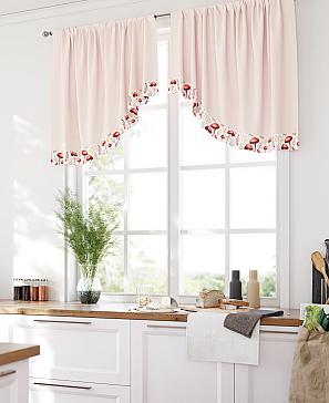 Комплект штор из легкой портьерной ткани (габардин) оформлен печатным рисунком. Печатный рисунок дает широкие возможности обновить интерьер фактически нет требуя ремонта за счет огромного выбора. Ткани с печатным рисунком безопасны и не содержат токсичных веществ. Не смотря на то что, материал легкий, он имеет высокую плотность, мало загрязнятся и не требует особого ухода даже после стирки, что важно для кухонных занавесок. Шторы не выцветают, не растягиваются, превосходно драпируются, образуя струящиеся складки. Прекрасное решение для создания красоты и уюта с помощью уникальных дизайнов.