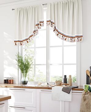 Комплект штор из легкой портьерной ткани (габардин) оформлен печатным рисунком. Печатный рисунок дает широкие возможности обновить интерьер фактически нет требуя ремонта за счет огромного выбора. Ткани с печатным рисунком безопасны и не содержат токсичных веществ. Не смотря на то что, материал легкий, он имеет высокую плотность, мало загрязнятся и не требует особого ухода даже после стирки, что важно для кухонных занавесок. Шторы не выцветают, не растягиваются, превосходно драпируются, образуя струящиеся складки. Прекрасное решение для создания красоты и уюта с помощью уникальных дизайнов.