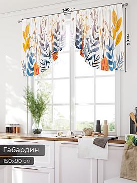 Комплект штор из легкой портьерной ткани (габардин) оформлен печатным рисунком. Печатный рисунок дает широкие возможности обновить интерьер фактически нет требуя ремонта за счет огромного выбора. Ткани с печатным рисунком безопасны и не содержат токсичных веществ. Не смотря на то что, материал легкий, он имеет высокую плотность, мало загрязнятся и не требует особого ухода даже после стирки, что важно для кухонных занавесок. Шторы не выцветают, не растягиваются, превосходно драпируются, образуя струящиеся складки. Прекрасное решение для создания красоты и уюта с помощью уникальных дизайнов.
